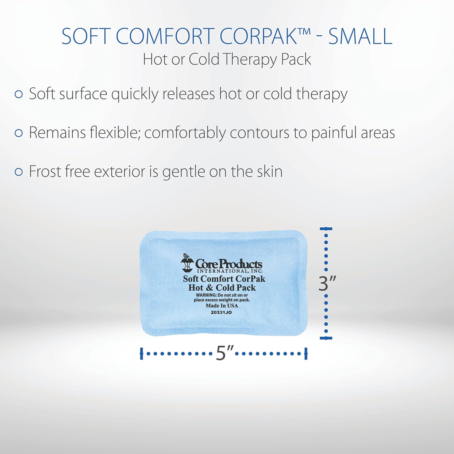Core Products Soft Comfort CorPak – Reusable Hot & Cold Therapy Pack, Ice Pack for Injuries, No-Frost Compress for Muscle, Back & Joint Pain Relief – 3" x 5", Made in USA