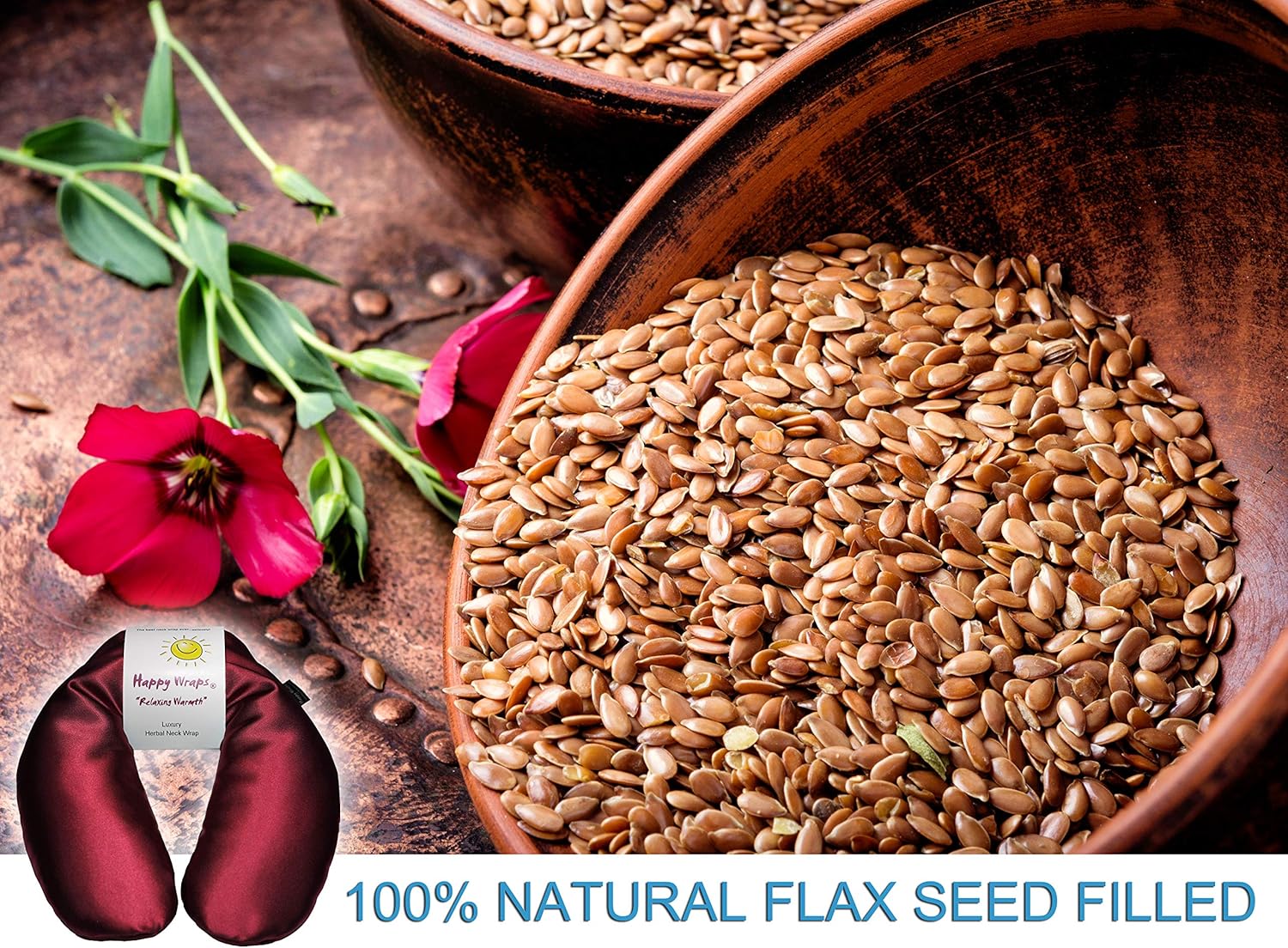 Microwavable Herbal Neck Wrap - Hot Cold Aromatherapy Neck Warming Pillow - Heating Pad for Migraines, Stress, Gifts for Women, Birthdays, Christmas and Free Sleep Mask - Ruby Satin
