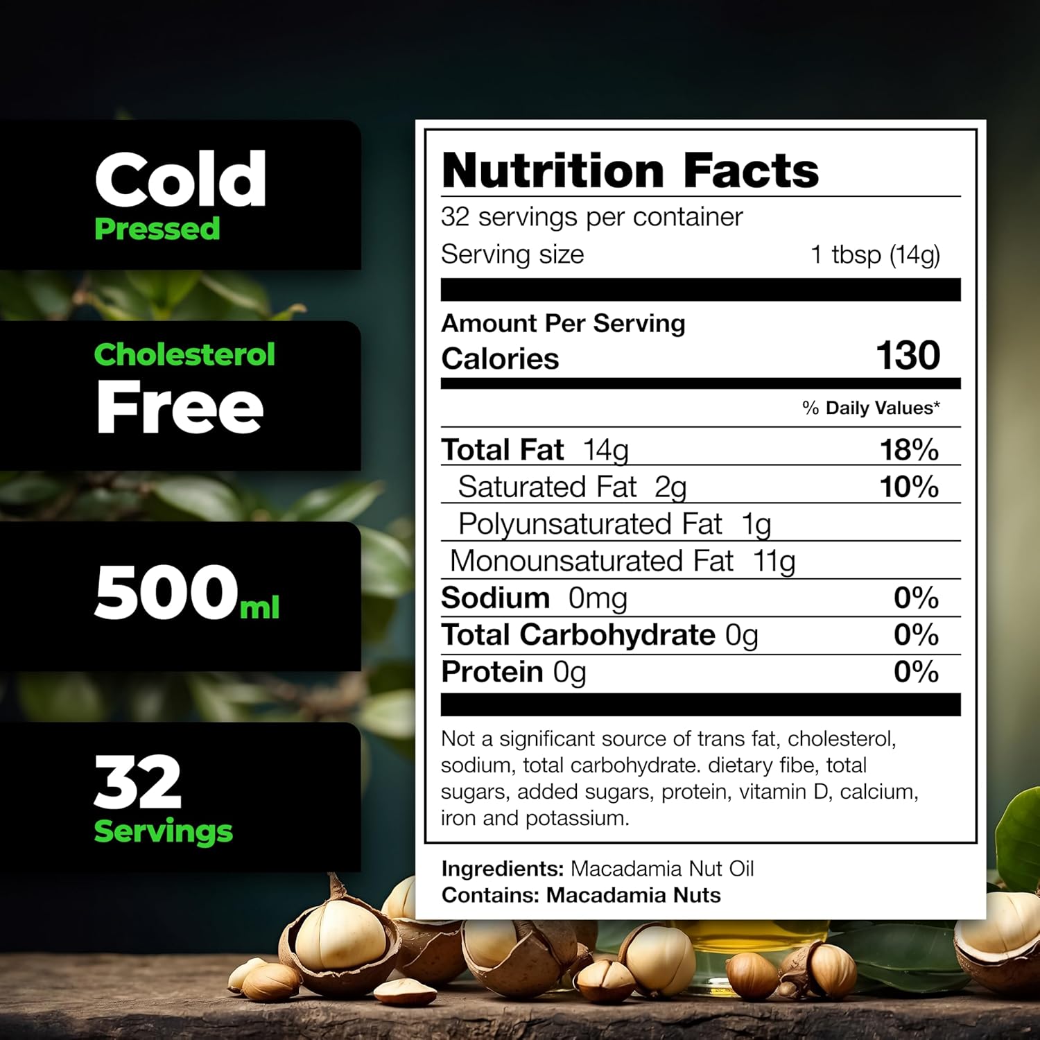 - SMOOTH & BUTTERY FLAVOR FOR GOURMET COOKING. Elevate your meals and recipes with the rich, nutty, and buttery taste of pure macadamia nut oil. Perfect for sautéing, roasting, grilling, or drizzling onto salads, this cooking oil enhances everythingfrom roasted vegetables to grilled seafood and homemade marinades.