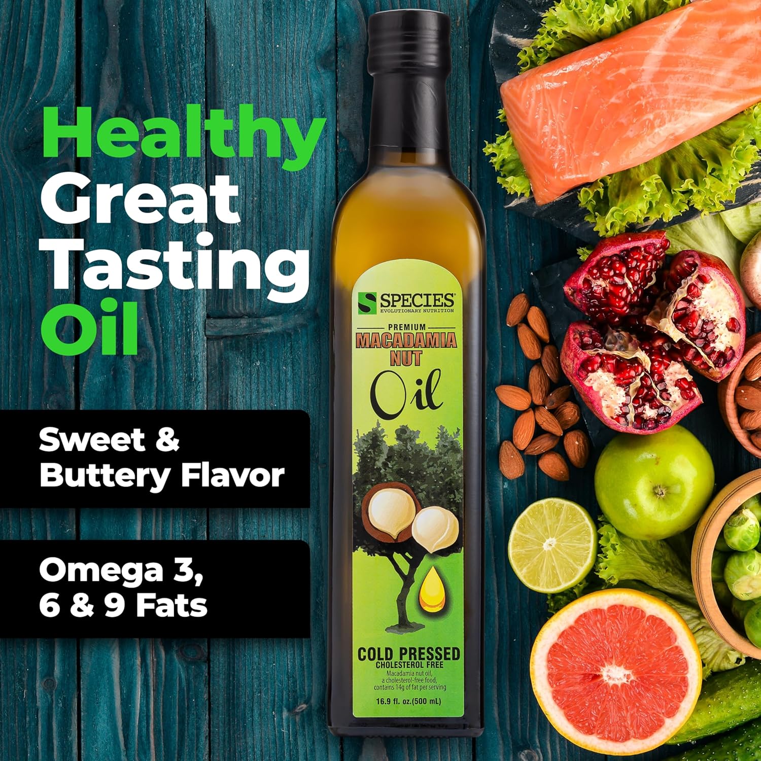 Species Nutrition Macadamia Nut Oil, Healthy Cooking Oil for Stir Fry, Sweet, Buttery, Great Tasting, Omega 9 Monounsaturated Fats, Balanced Omega 3 & 6 Fats. (32 Servings)