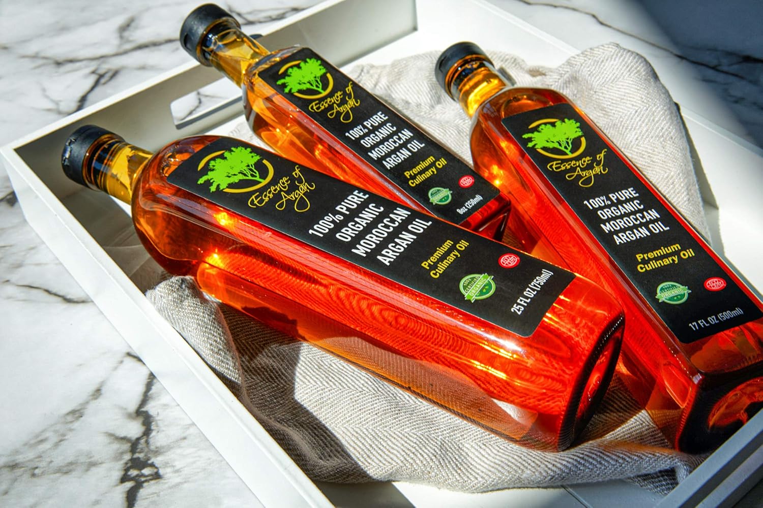 Essence of Argan Organic Moroccan Argan Oil for Cooking, Vegan Eco-Certified USDA-Approved Natural Argan Oil, Great Culinary Oil and Keto Dressing Rich in Nutrients, 25 Ounces