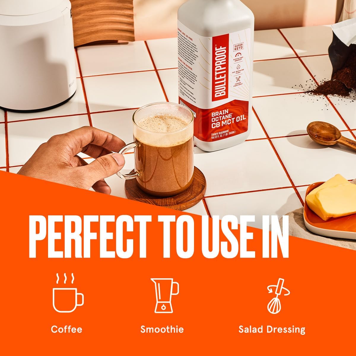 - Contains one 32-ounce bottle of premium Bulletproof Brain Octane C8 MCT Oil