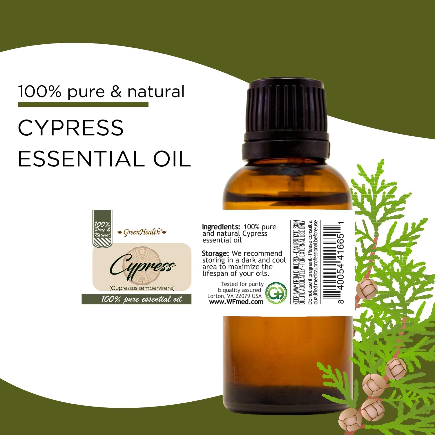 Cypress Essential Oil – 8 fl oz (237 ml) Aluminum Bottle w/Plug Cap – 100% Pure Essential Oil – GreenHealth