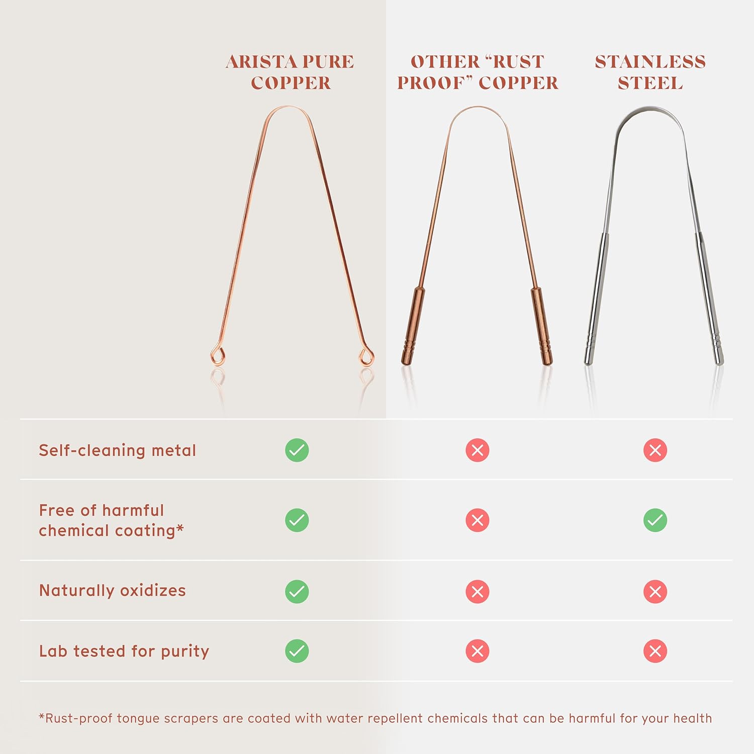 - 100% Pure Copper: Made from uncoated copper for true Ayurvedic benefits. This copper tongue cleaner pack is naturally hygienic, and safer than coated “rust-proof” alternatives, that block copper’s self-cleaning properties.
