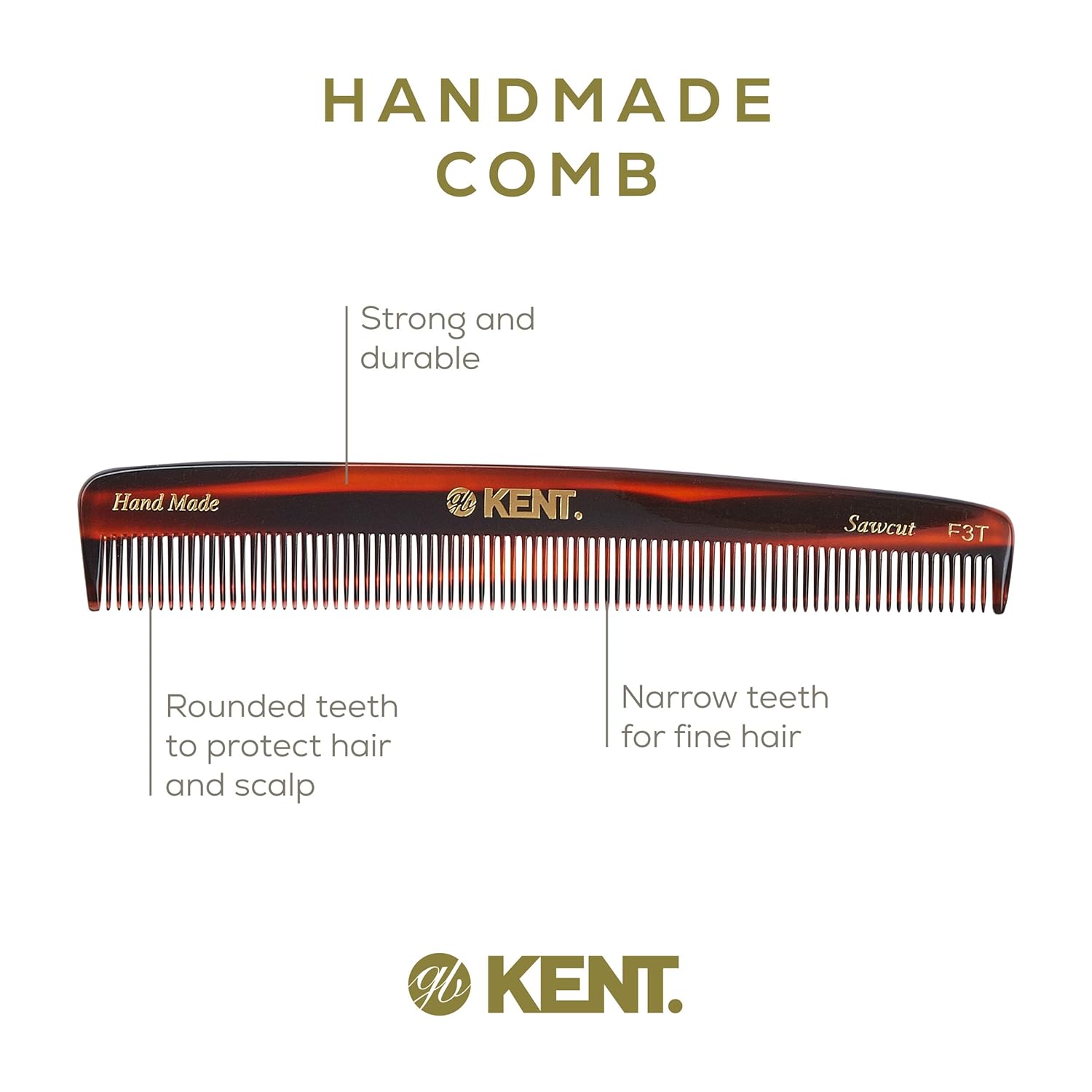 Kent F3T Tortoise Fine Tooth Comb - Hair Parting and Straightening Comb for Men's & Women's Dandruff Remover, Saw Cut and Hand Polished Made in England