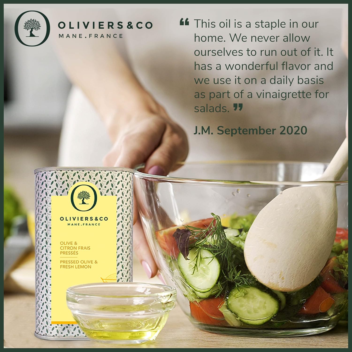 Cold Pressed Lemon Olive Oil by Oliviers & Co | Extra Virgin Olive Oil with Fresh Whole Lemons | Gourmet Italian EVOO for Seafood, Vegetables & Desserts | 8.4 Fl Oz in Metal Tin