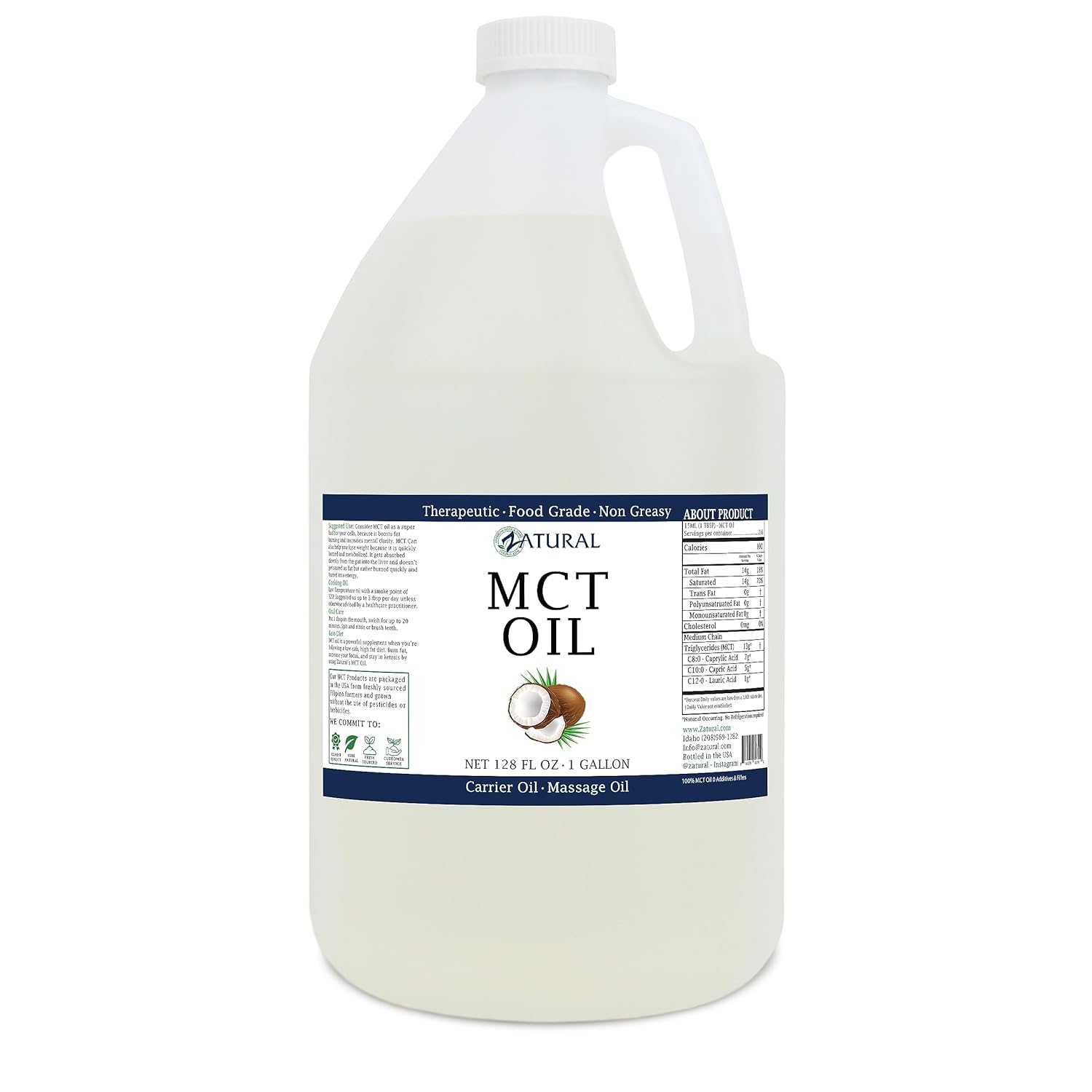 - 100% MCT Oil-(Medium Chain Triglycerides) Oil from Zatural- Therapeutic and Food Grade