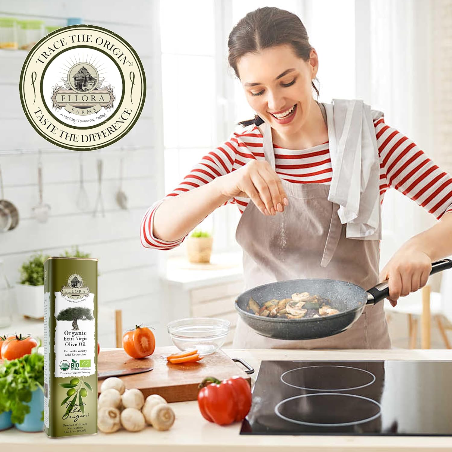 - NO INSECTICIDES, HERBICIDES OR PESTICIDES- The rolling hills of the Kolymvari region, combined with the fresh winds from the Aegean Sea, has kept the Olive Groves of ELLORA Farms healthy and fruitful for centuries, year after year. The prized and award winning EVOO is Certified Organic by USDA and BIO HELLAS