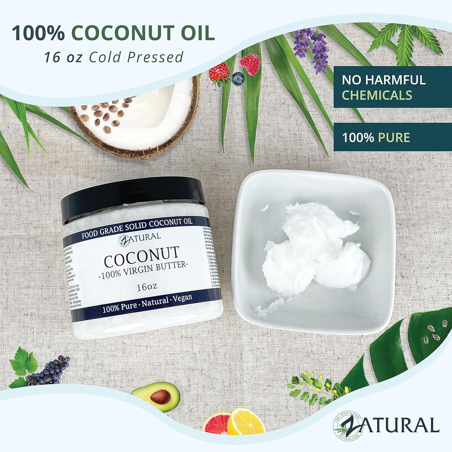Zatural Coconut Oil, 100% Virgin Organic Extra Virgin Unrefined, Cold Pressed, 8 Pounds (16 Ounce)