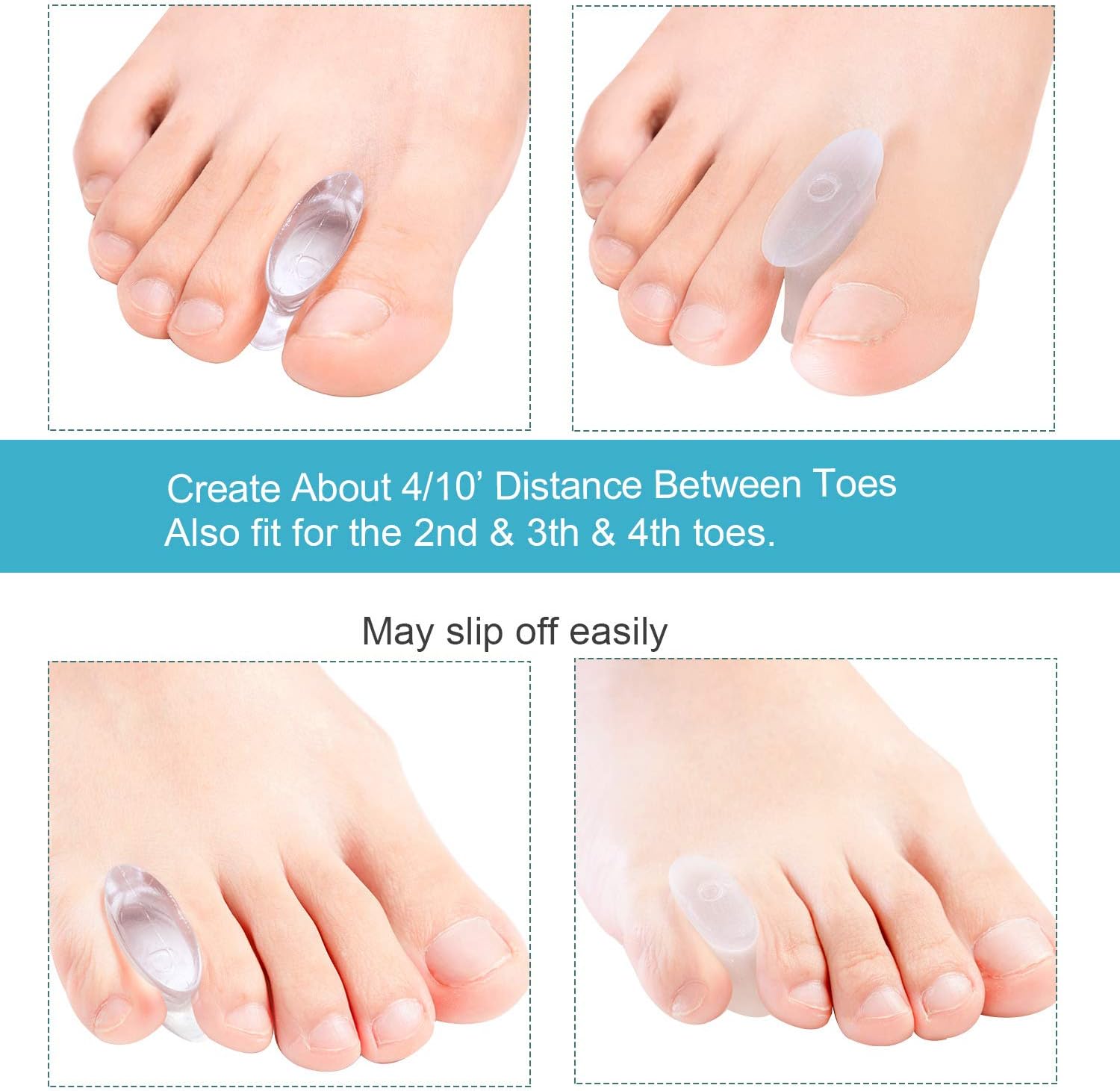 - 【Small Size】 If you have small feet, we recommend you to try this small size between the 1st and 2nd toes. If this small size is too thick or too thin for you, please choose other spacers of 3/10’’, 1/2’’, 6/10’’ thickness from our shop.
