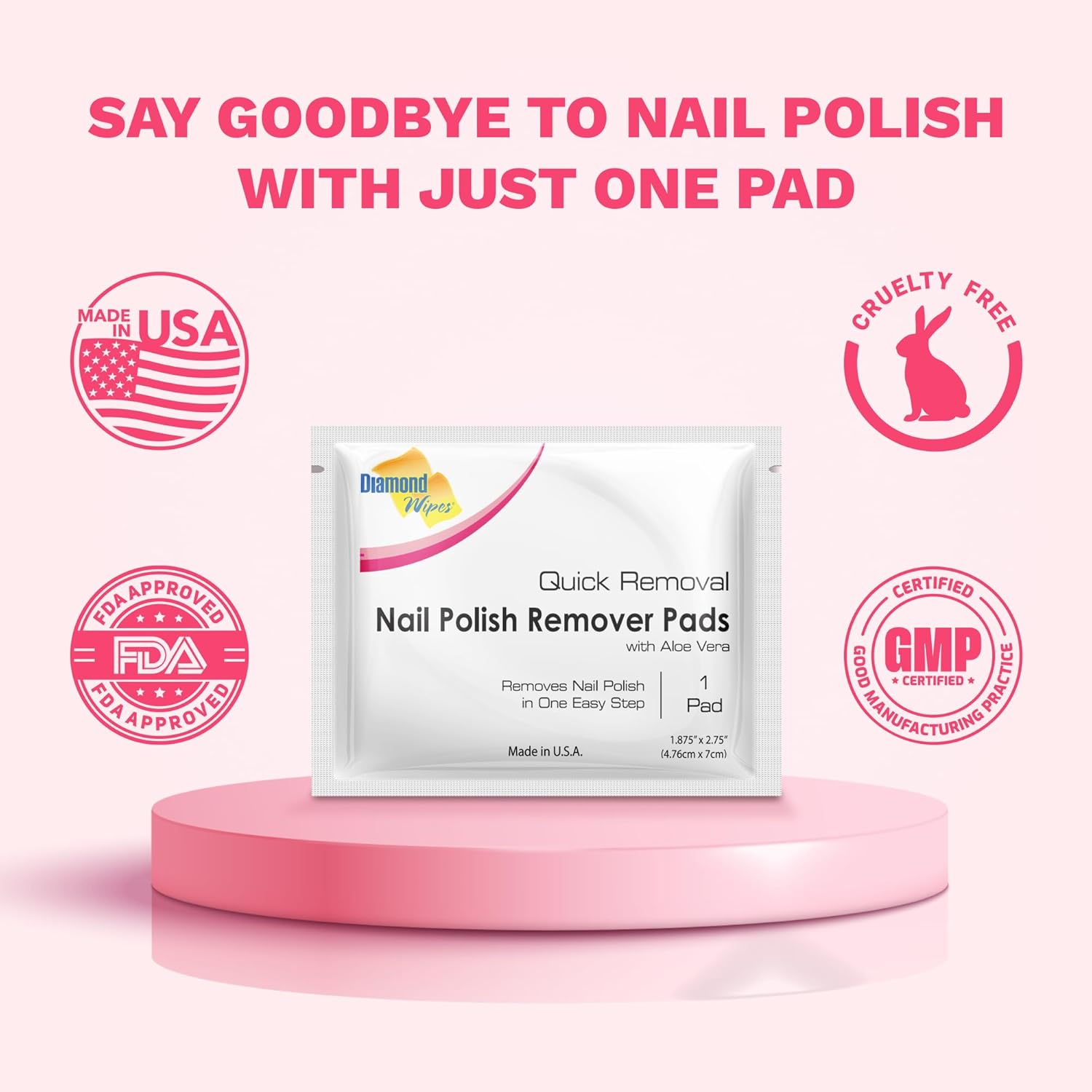 - NAIL POLISH REMOVER - Easily and quickly remove nail polish and change nail colors anytime with our acetone wipes. This travel size nail polish remover acetone-infused pads contain Diamond Wipes' original acetone formula, aloe vera, and vitamin E to clear and condition your nails.