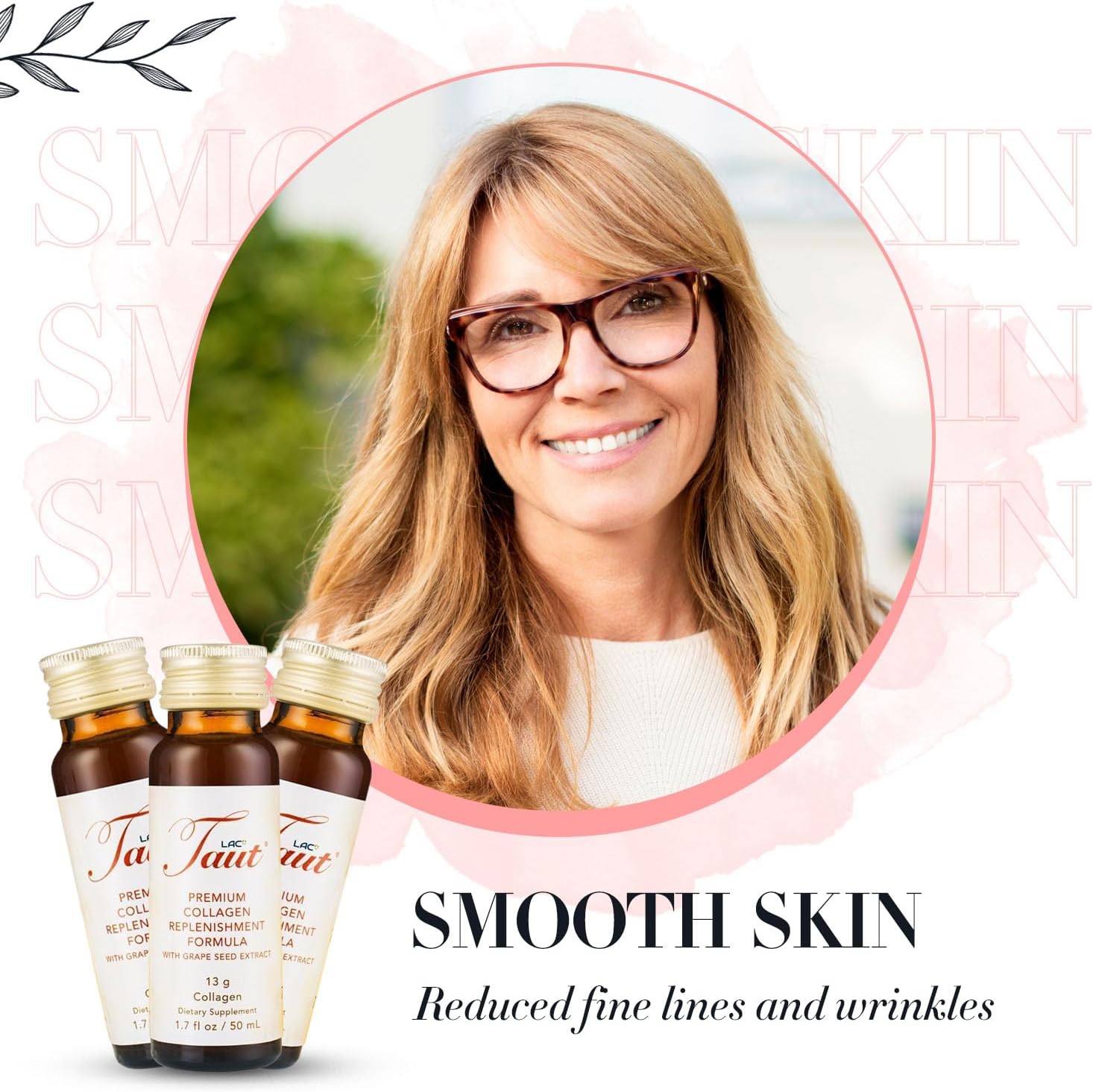 TAUT Liquid Collagen for Women – 13,000mg Marine Collagen Drink with Hyaluronic Acid, Grape Seed & Elastin – Visible Skin, Hair & Joint Support – 1 Box (8 Bottles Each)