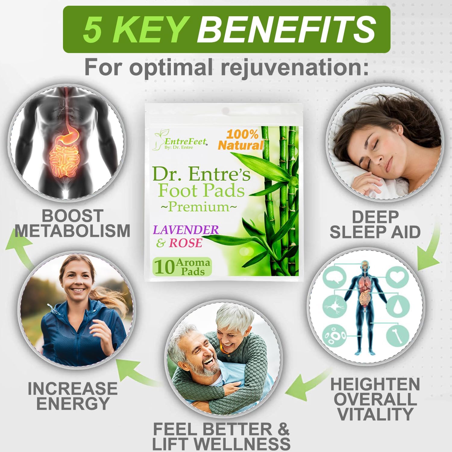 Dr. Entre's Foot Pads: Premium Foot Pads to Feel Better, Sleep Better & Relieve Stress | Effective Organic Lavender & Rose Foot Patches | 10 Pack