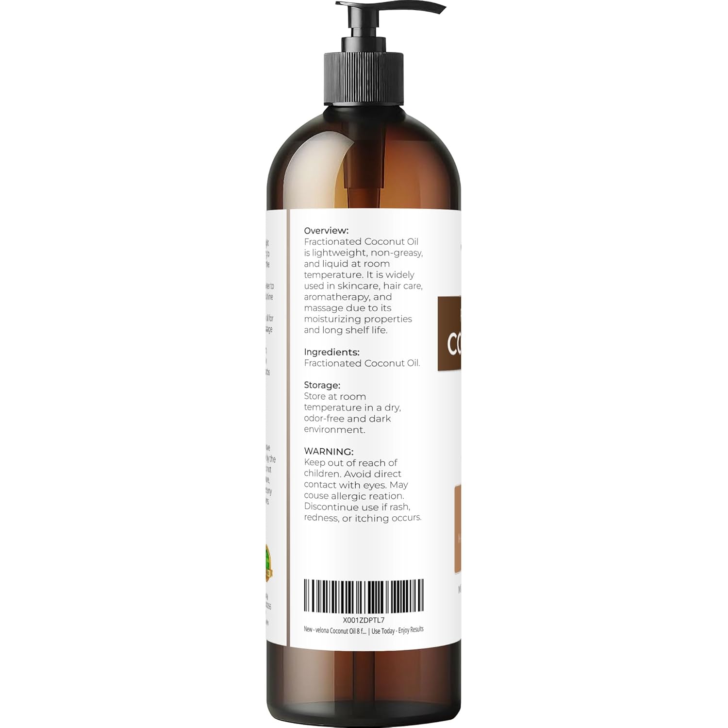 velona MCT Coconut Oil 8 Fl Oz | 100% Pure and Natural Carrier Oil | Fractionated | Skin, Face, Body, Hair Care | Use Today - Enjoy Results