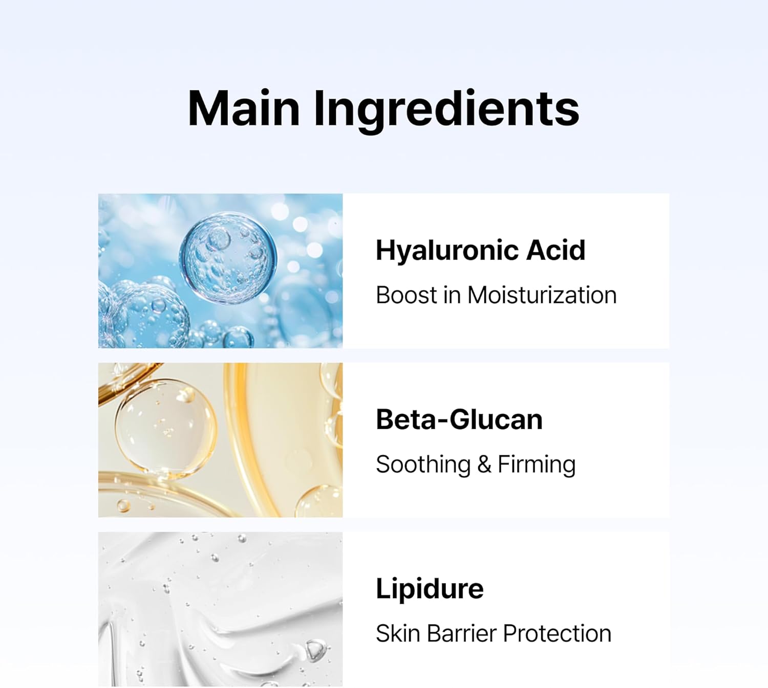 - ๐งDEEP HYDRATION FOR RADIANT SKIN: Packed with Beta Glucan, Lipidure, Hyaluronic Acid, and Centella Asiatica Extract. Delivers a burst of moisture to inner skin layers for a radiant and healthy complexion.