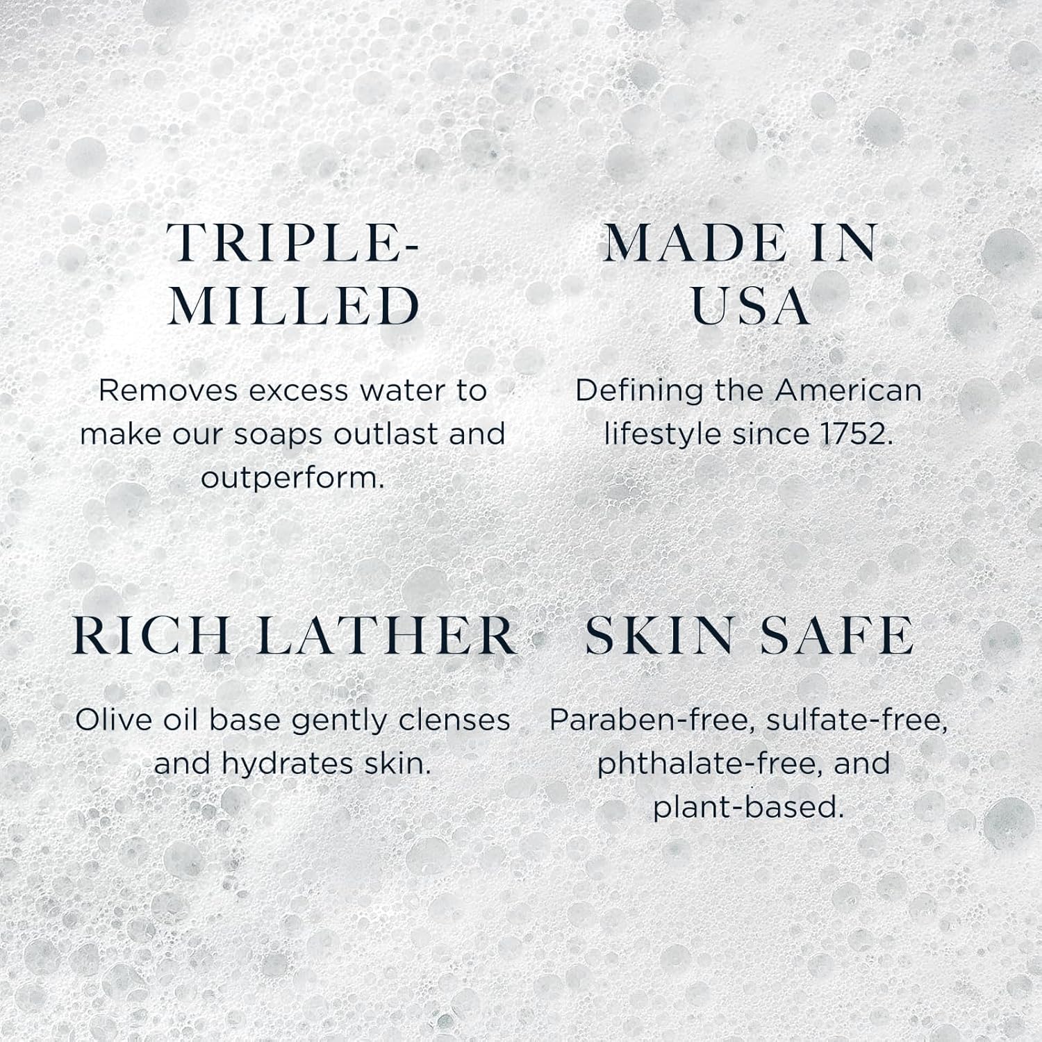- Triple-Milled Luxury Bath Soaps: Crafted for superior quality, each bar is triple-milled for a creamy, rich lather and long-lasting performance. Glycerin-rich formula helps lock in moisture and leaves skin soft and refreshed.