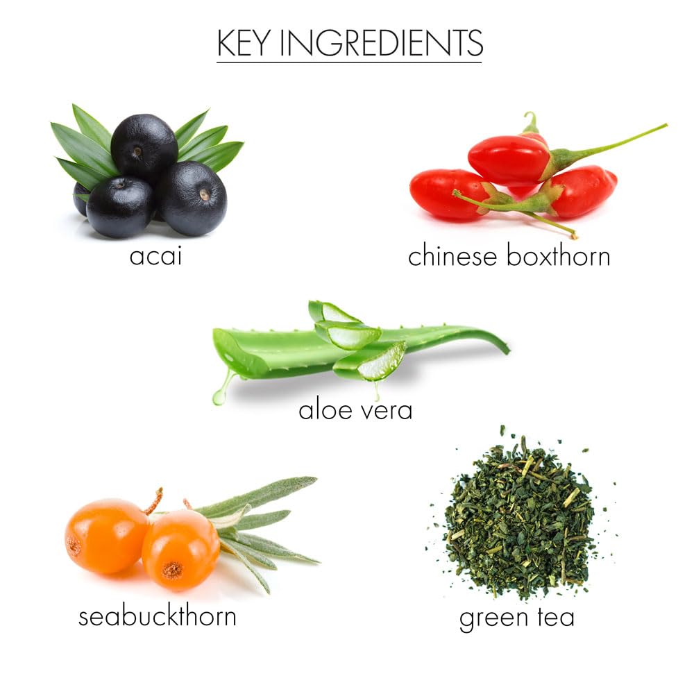 - CLARIFIES: The appearance of UV damaged skin is reduced by organic green tea and chinese boxthorn