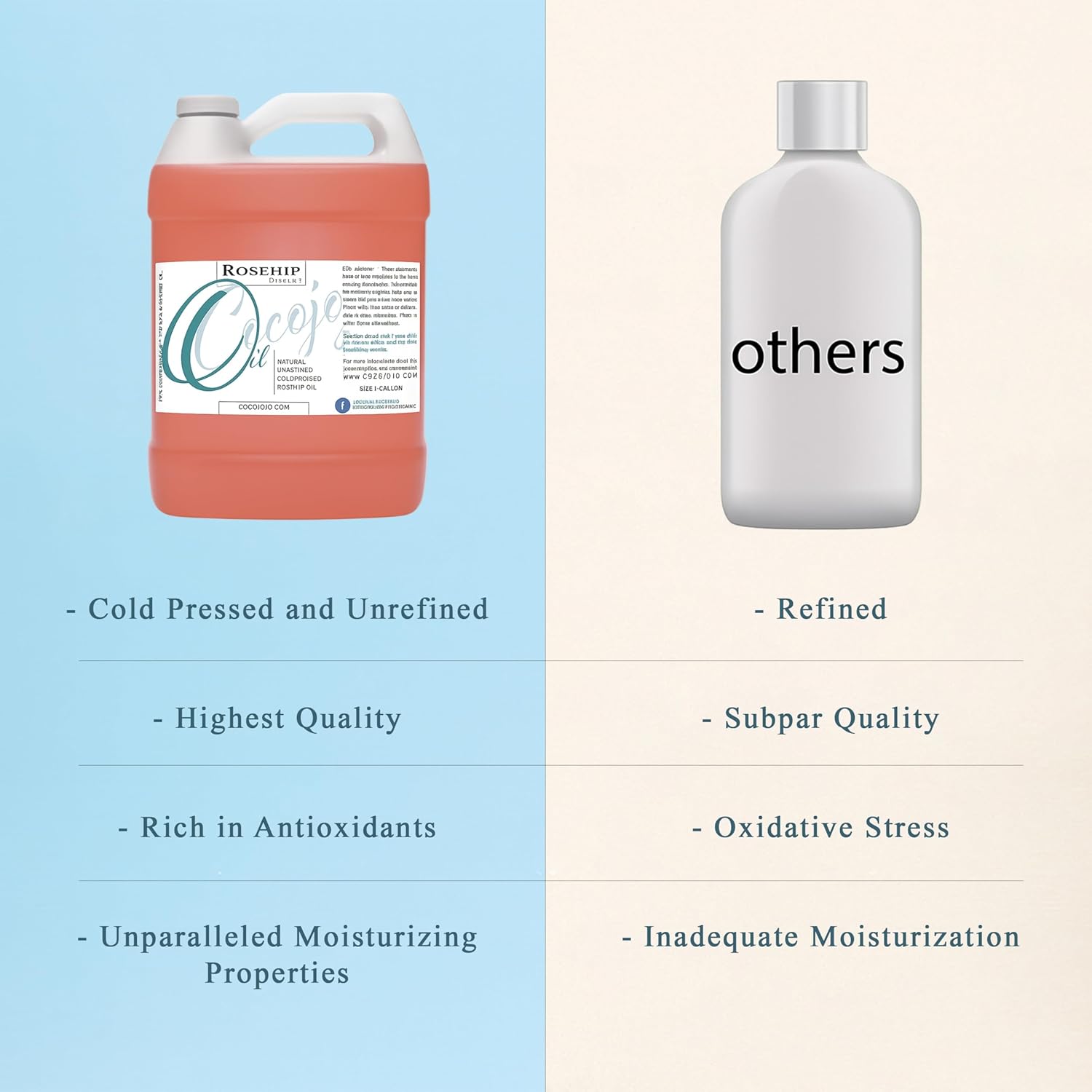 Dr Joe Lab Rosehip Oil - Bulk 128 oz 1 Gallon - Pure Unrefined Cold Pressed Natural Vegan Non GMO Virgin Seed Carrier Oil - Hair Skin Face Body Nails Cuticle Under Eye Mature Sensitive