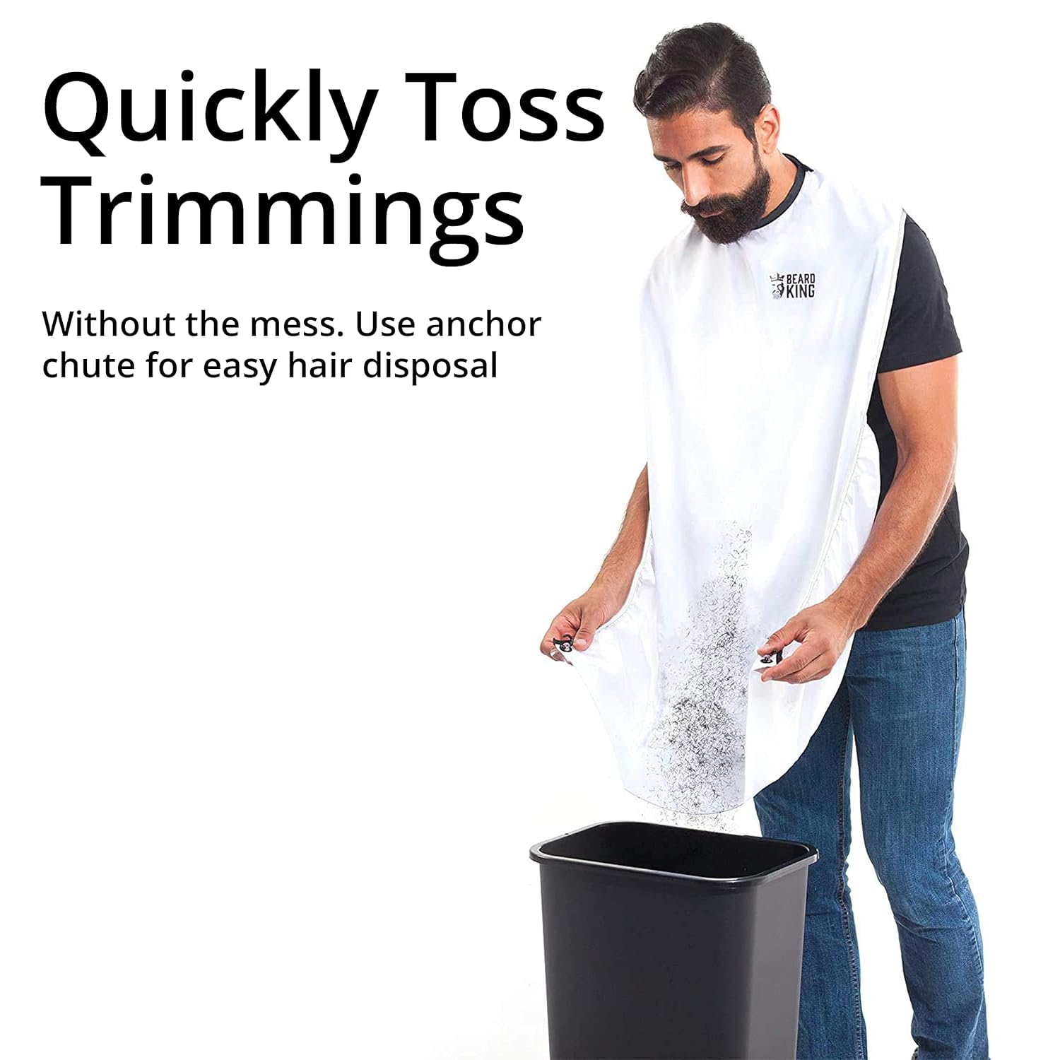 Beard King Beard Bib Apron - Shaving Set for Dad - As Seen on Shark Tank - Men's Hair Catcher for Shaving - Grooming Accessories, White