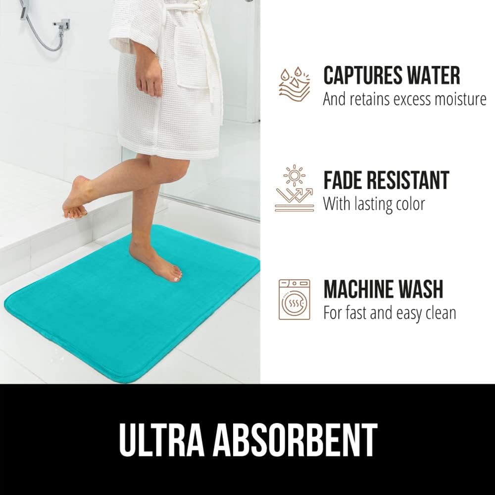 GORILLA GRIP Memory Foam Bath Rugs, Soft Absorbent Velvet Bathroom Mats, Durable Dots on Underside, Machine Washable Bathmat, Carpet Rug Room Decor for Shower Floor, 24x17 Mat, Turquoise