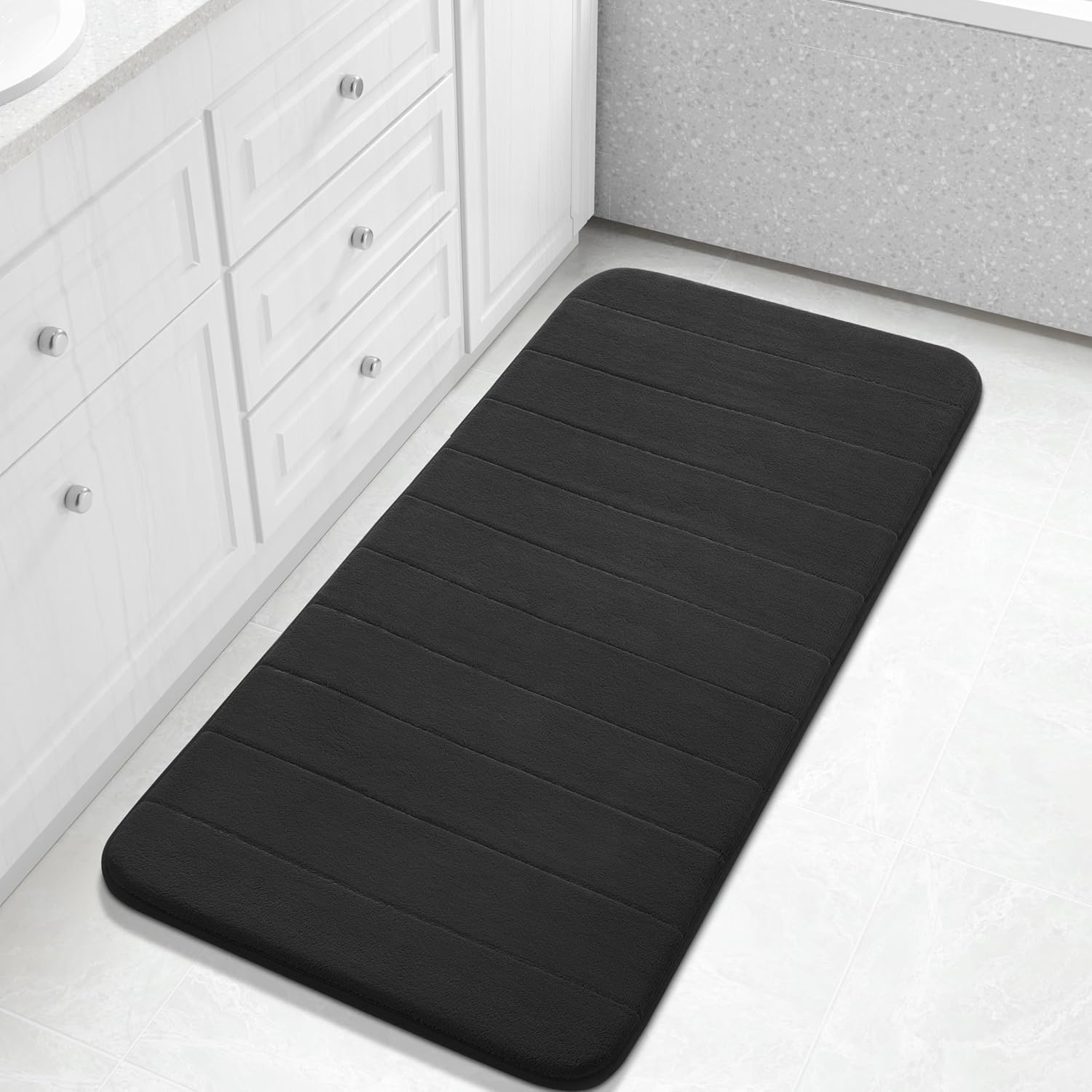 Yimobra Long Bath Mat 44"x24", Super Soft Quick Dry Memory Foam Bathroom Rug, Water Absorbent, Non Slip Backing Machine Washable for Tub Shower, Thick Comfort Support, Black
