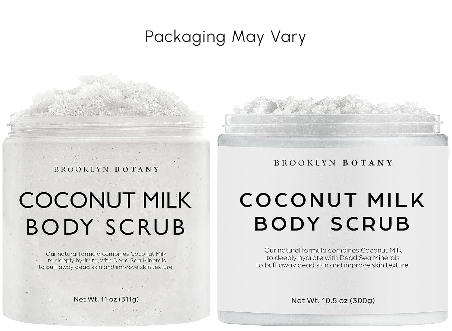 Brooklyn Botany Coconut Milk Body Scrub - Moisturizing and Exfoliating Body, Face, Hand, Foot Scrub - Fights Stretch Marks, Fine Lines, Wrinkles - Great Gifts for Women & Men - 10 oz