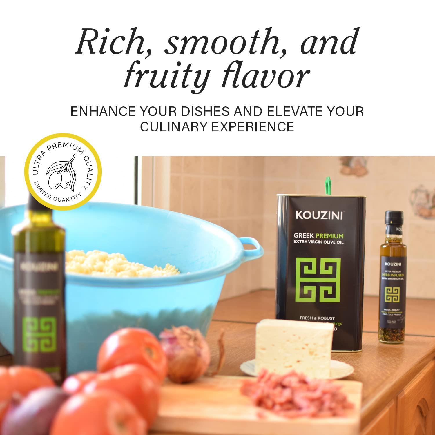 - Rich Flavor & Aroma: Kouzini Greek Premium Extra Virgin Olive Oil has a rich, fruity flavor with a hint of peppery finish and a fragrant aroma, perfect for enhancing your dishes and taking your culinary experience to new heights