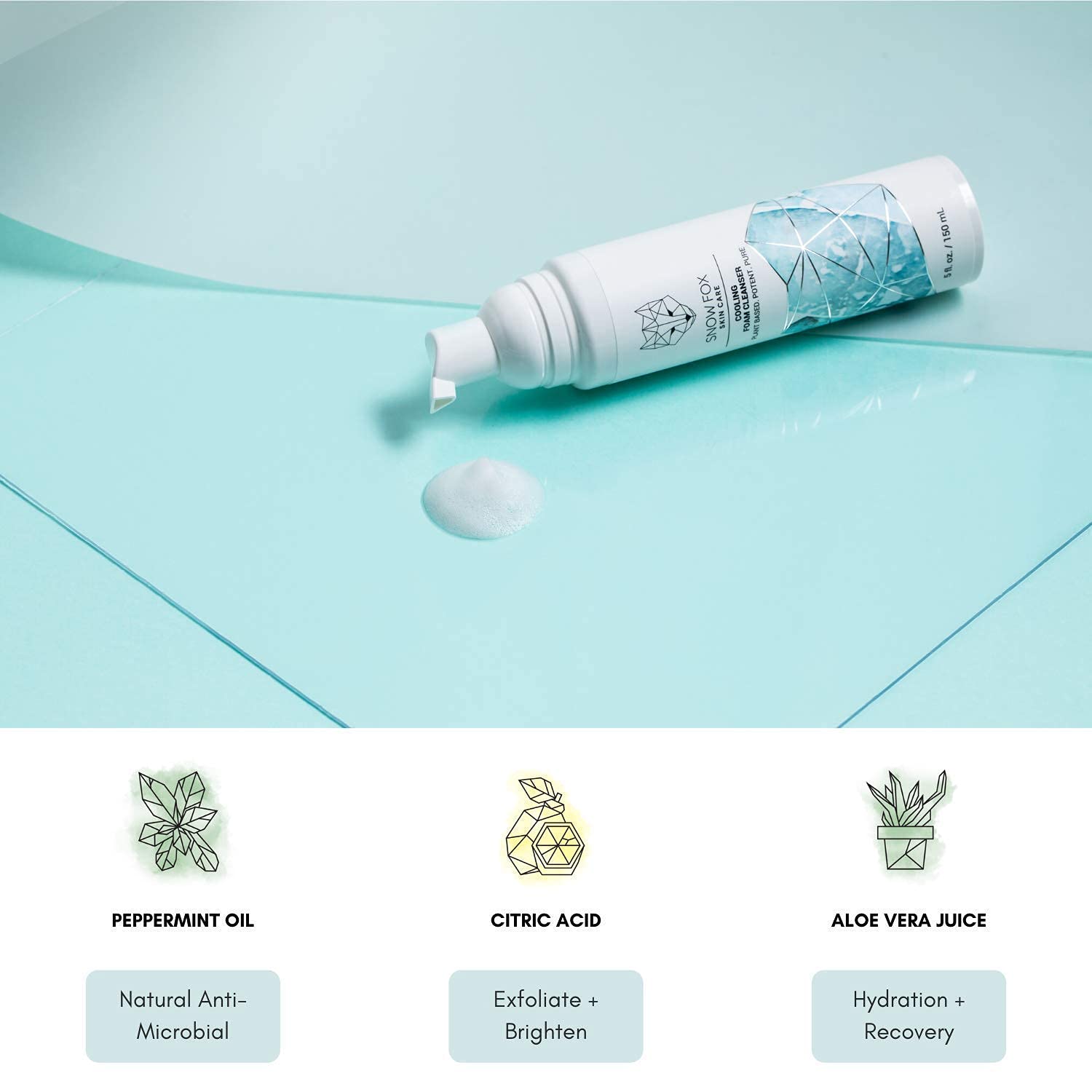 Snow Fox Cooling Foam Cleanser with Organic Aloe Vera Juice, 150 ml