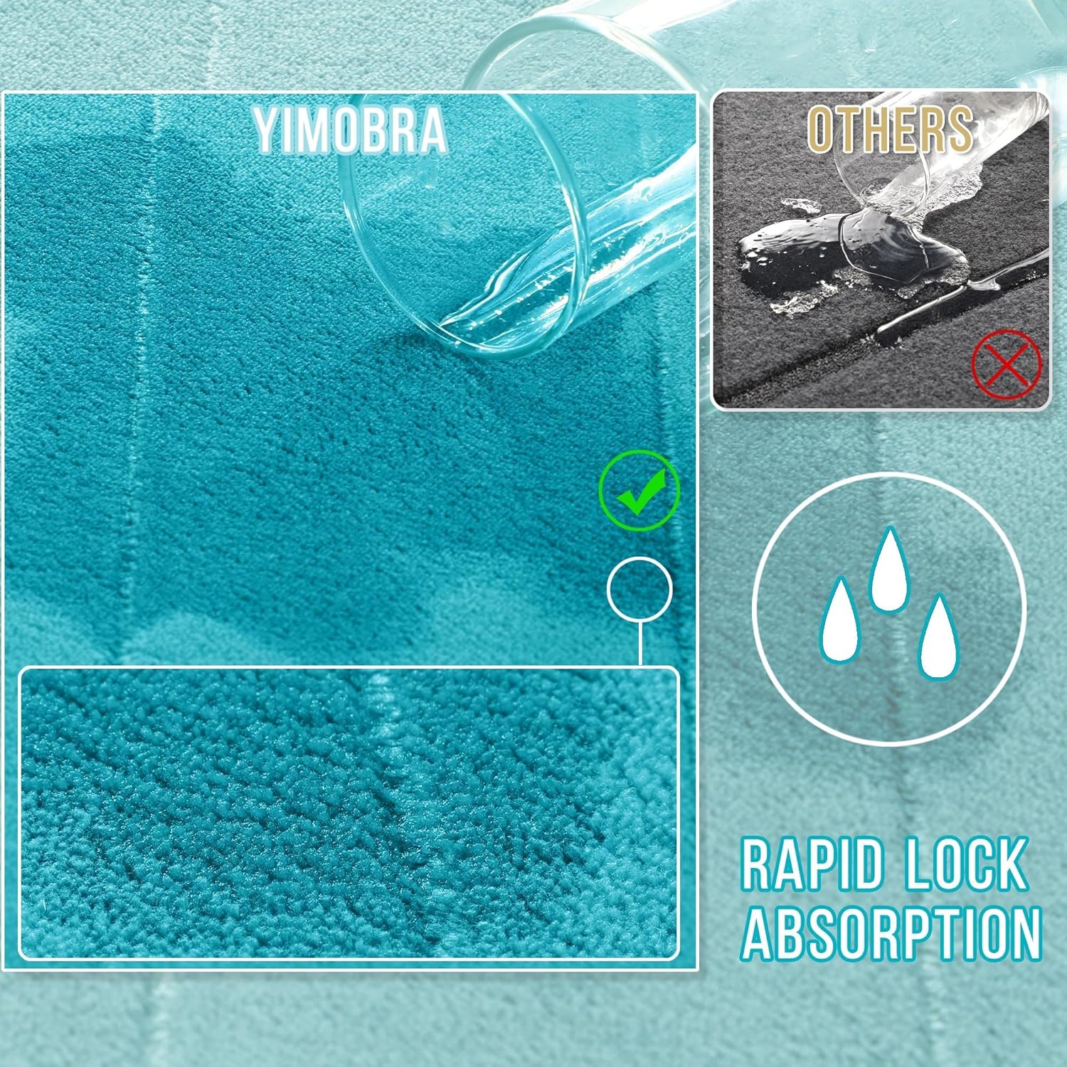 - 【Rapid Lock Absorption: Coral Velvet + Deep Foam Core】Yimobra bath mat engineered with premium coral velvet surface and deep memory foam core, our Rapid Lock technology instantly traps water. The coral velvet fibers actively pull in liquid while the high-density foam core prevents seep-through, ensuring maximum dryness after every use