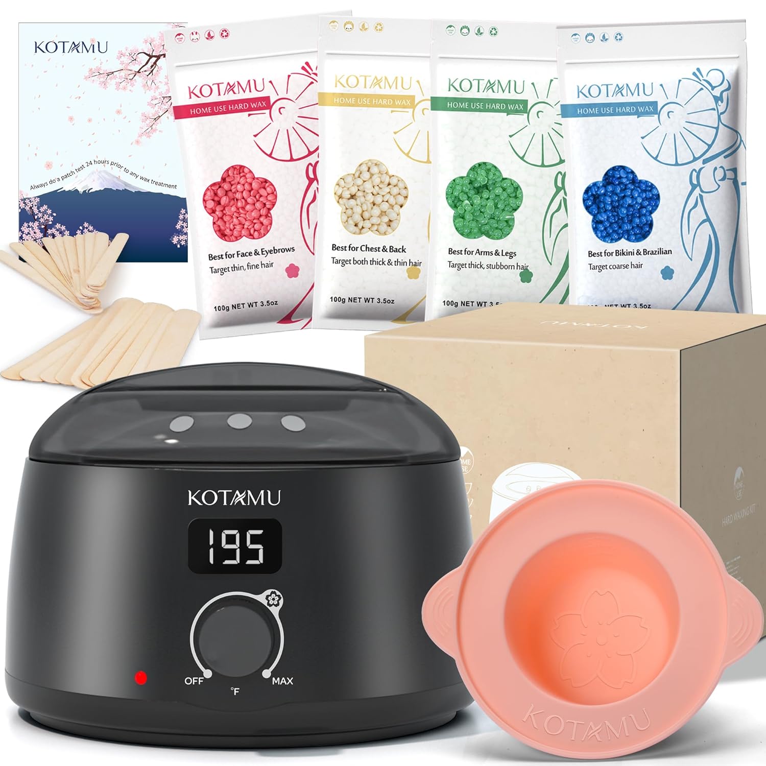 - Exceptional Value & Diverse Experiences: Elevate your waxing experience with KOTAMU’s all-in-one hard wax kit, where exceptional value meets versatility. Offering a professional digital wax heater, easy-clean silicone bowl, and four specialized wax formulas, achieve unparalleled results for every hair type without leaving home. It’s premium waxing made accessible, ensuring a smooth, painless experience across all body areas