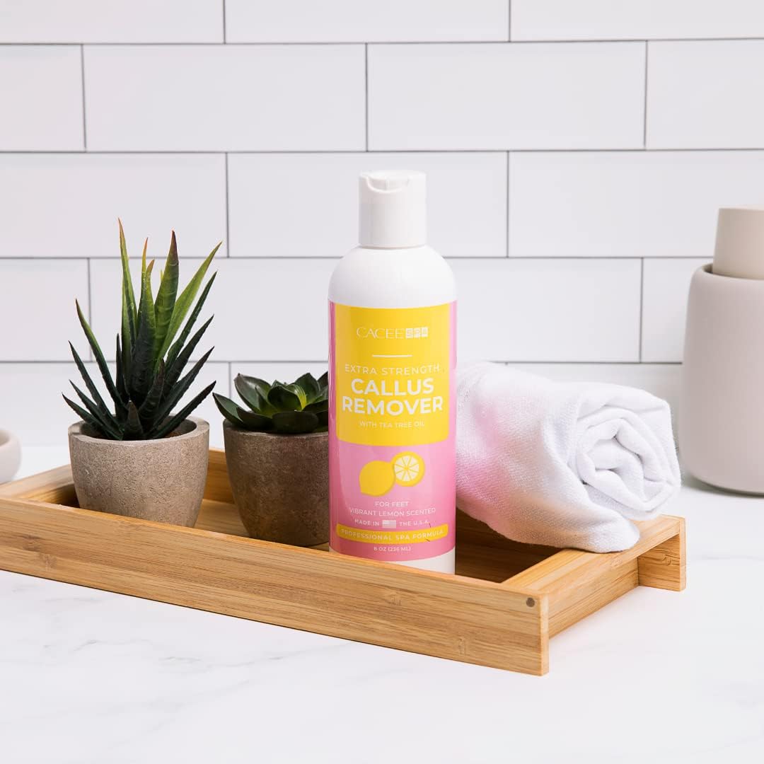 Cacee 8oz Foot Callus Remover with Tea Tree Oil, Lemon Scent for Foot Spa, Pedicure Soak, Foot Care, Athletes Foot Treatment, Cuticle and Callus Remover for Feet