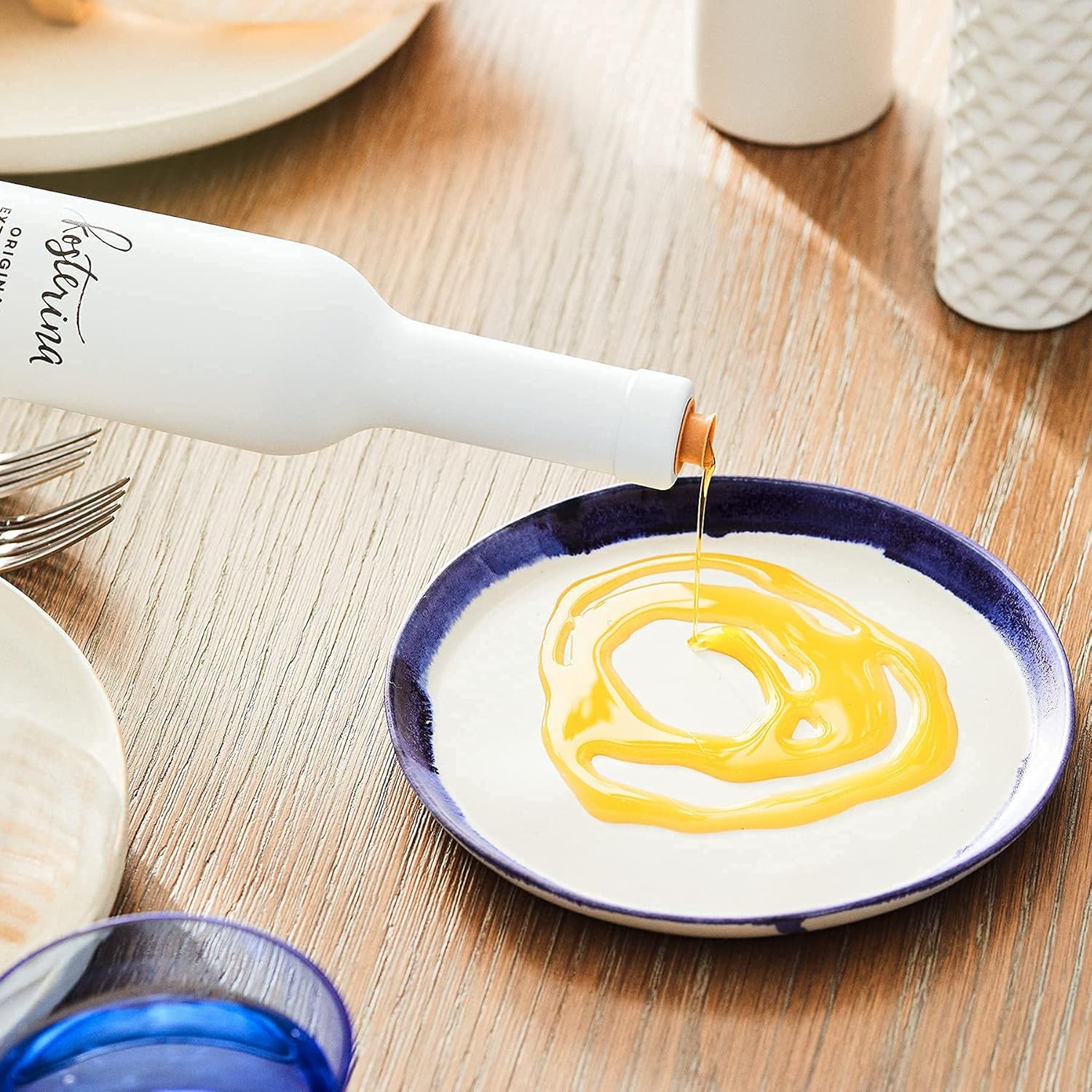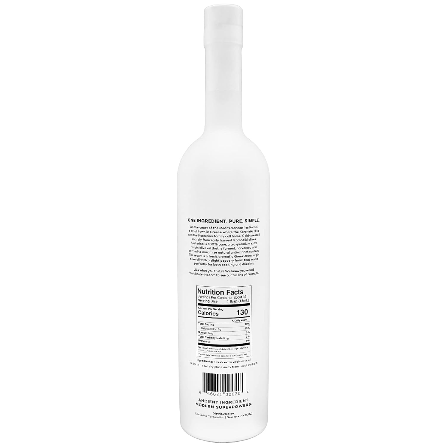 - Safe packaging, always - Kosterina extra virgin olive oil is packaged in opaque glass or tin, the only safe way to store olive oil.