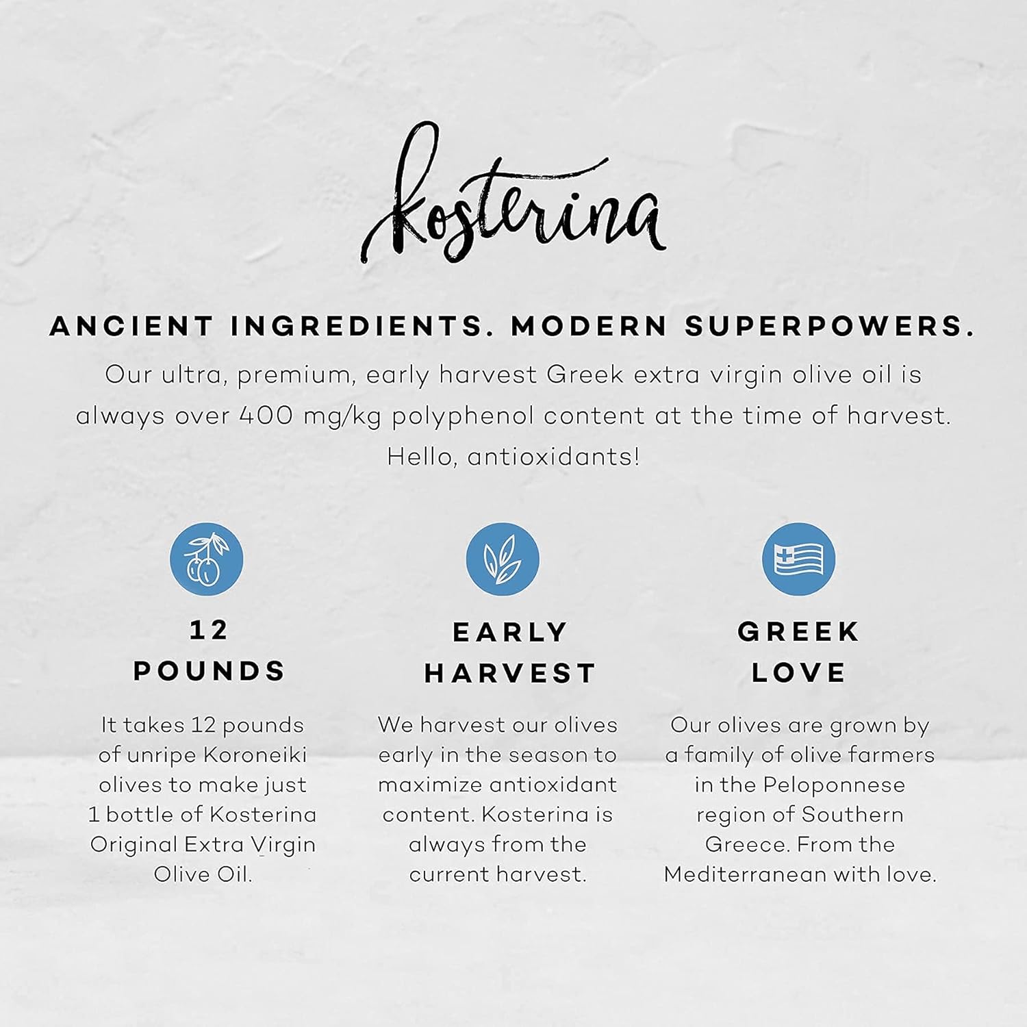 Kosterina Original Extra Virgin Olive Oil | Polyphenol Rich Greek Olive Oil, Cold-Pressed EVOO, Early Harvest Koroneiki Olives | High Antioxidant Natural Superfood | Harvested in Greece (16.9 oz)