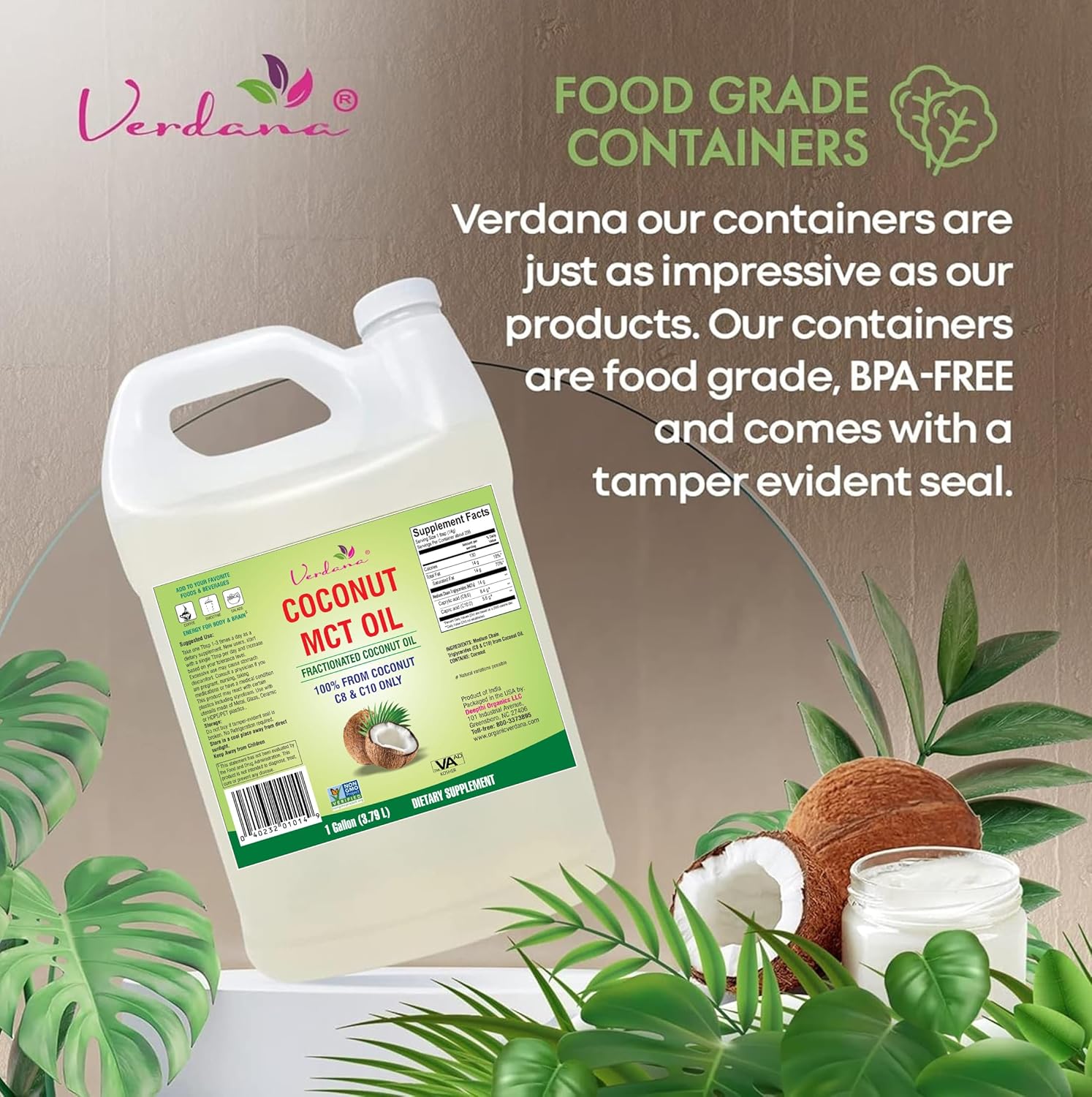 Verdana MCT Oil, Fractionated, 100% from Coconut - 1 Gallon - Kosher Food Grade, Vegan, Non-GMO - Great for Keto and Paleo Diet, Oil Pulling Oral Rinse Mouthwash (128 Fl Oz)