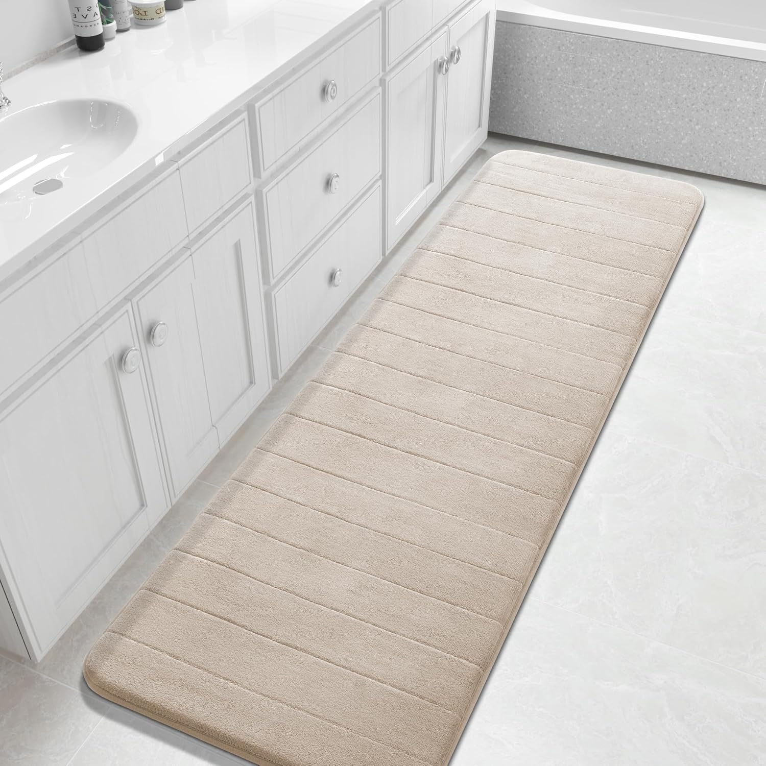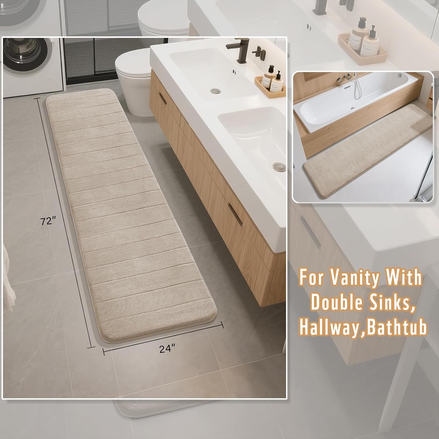 Yimobra Bathroom Runner Rugs 72"x24" Non Slip Washable Memory Foam Bath Mat, Super Soft Water Absorbent Hallway Carpet for Vanity Tub Shower, Beige