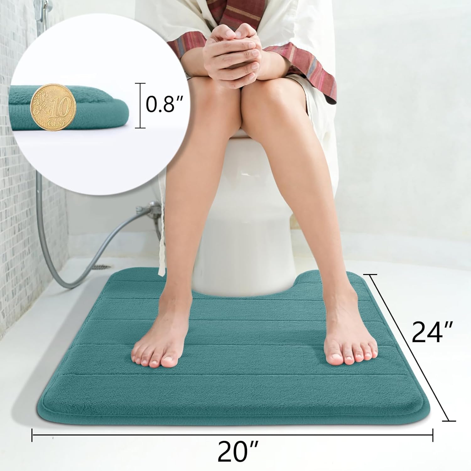 Yimobra Memory Foam Toilet Bath Mat U-Shaped, Soft and Comfortable, Water Absorption, Non-Slip, Thick, Machine Wash, Easier to Dry for Bathroom Commode Contour Rug, 24 X 20 Inch, Teal