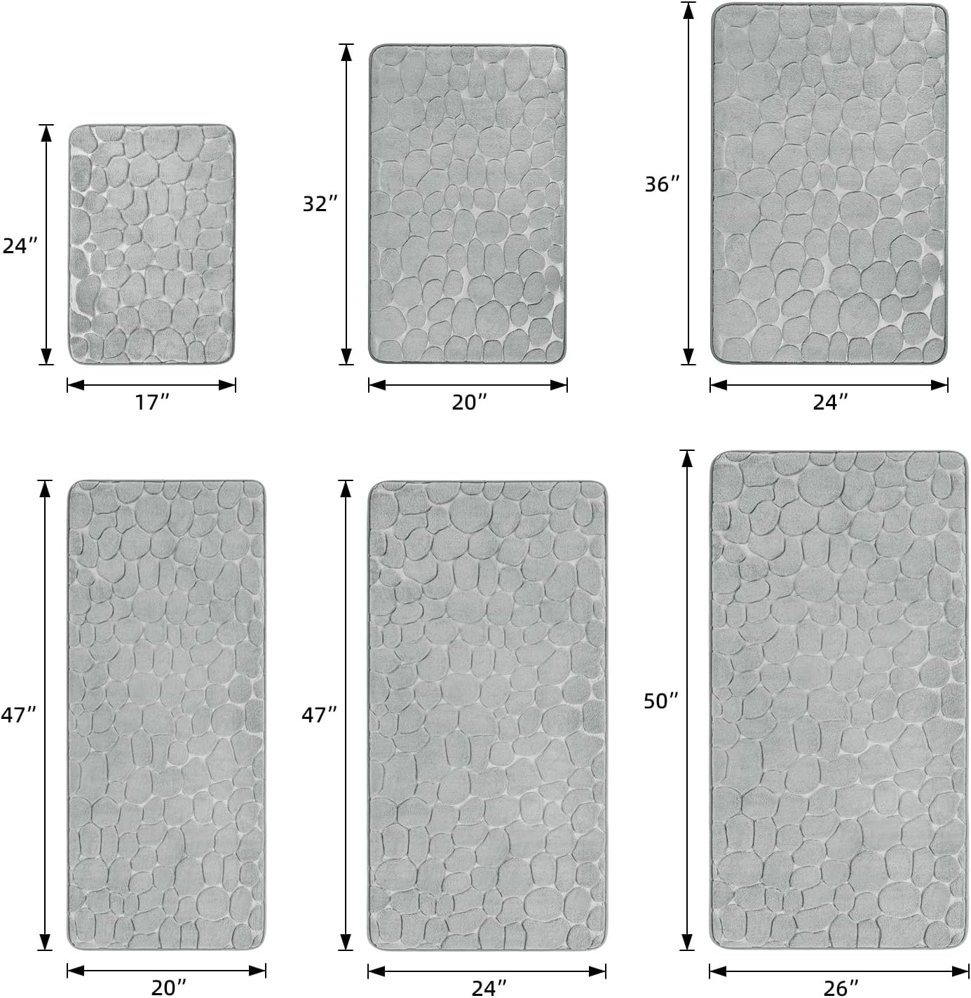 YIHOUSE Memory Foam Bath Mat Cobblestone Bathroom Rugs Super Water Absorbent Bath Mats for Bathroom Machine Washable Bath Rugs(20x32,Light Gray)