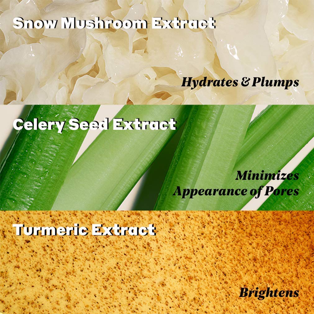 - INGREDIENTS: Celery Seed Extract helps smooth & blur; Snow Mushroom hydrates and helps improve moisture retention.