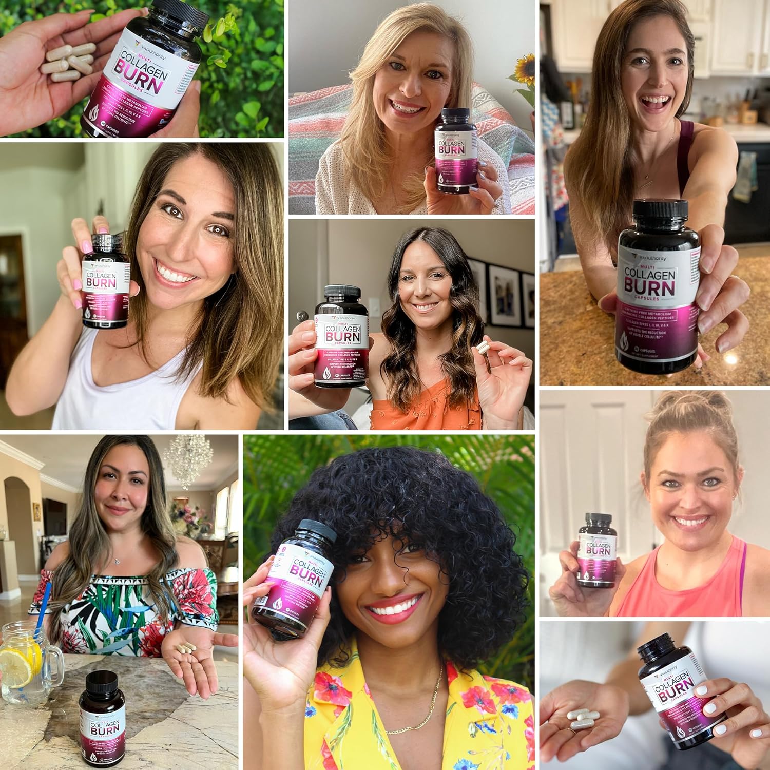 Multi Collagen Burn: Multi-Type Hydrolyzed Protein Peptides with Hyaluronic Acid, Vitamin C, SOD B Dimpless, Types I, II, III, V and X, Caffeine-Free (Unflavored Capsules)