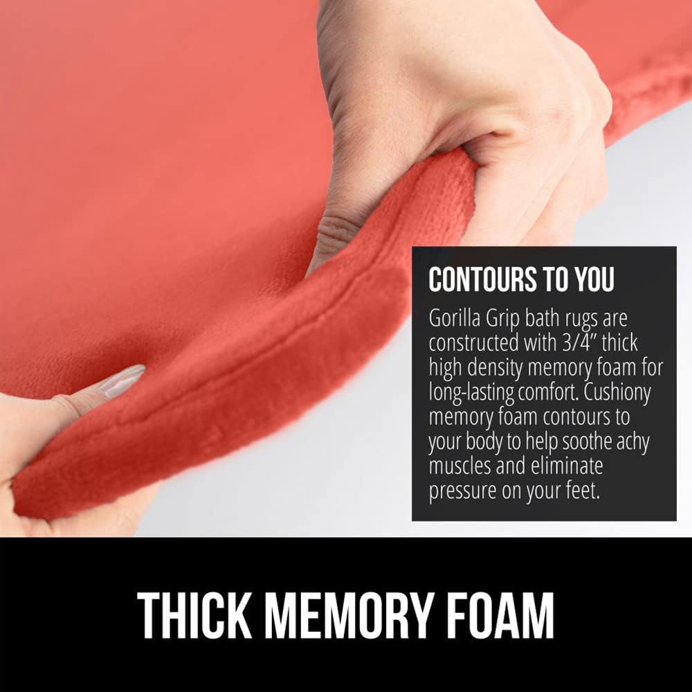 GORILLA GRIP Memory Foam Bath Mat, Soft Absorbent Velvet Bathroom Mats, Durable Dots on Underside, Machine Washable Bathmat, Carpet Rug Room Decor for Shower Tub Floor RV, 24x17 Rugs, Coral