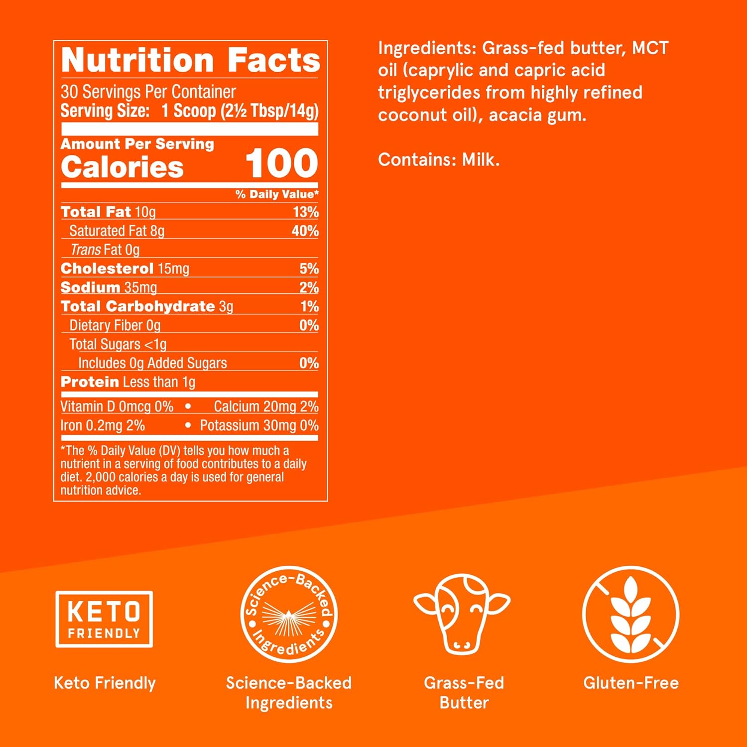 - A smooth, creamy keto creamer made with fat-burning MCT oil and grass-fed butter