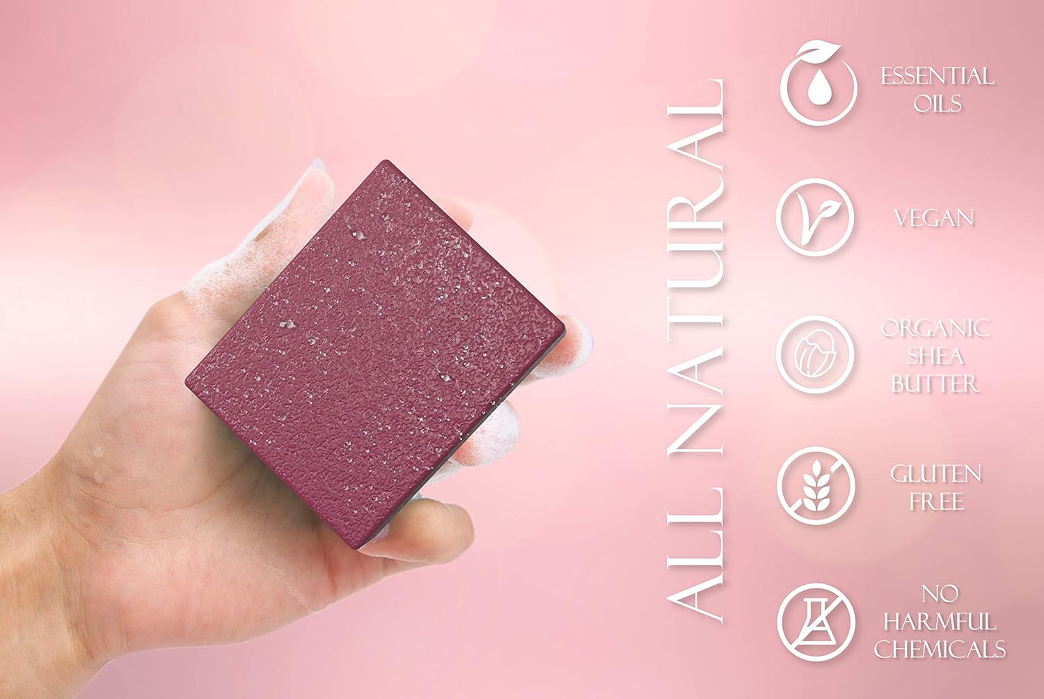- ★ ALL NATURAL – Made of essential oils, organic shea butter, ground oatmeal, activated charcoal, lye and sea salt. Sulfate-free, no parabens, no phthalates and no harmful chemicals. Vegan, gluten free, cruelty-free and only premium quality ingredients. No woman’s soap is more natural than NATURAL AMERICAN GODDESS.