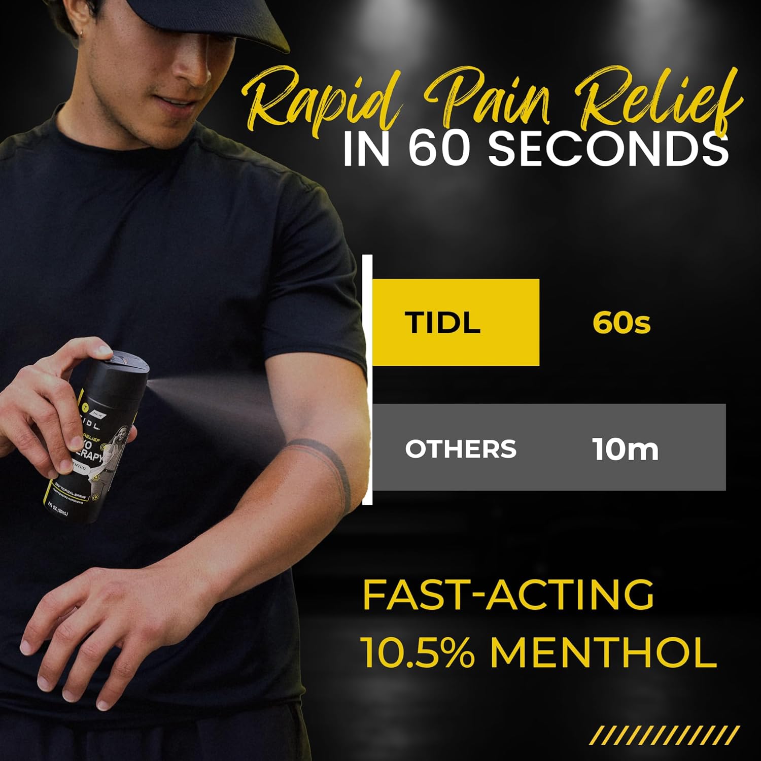 - FAST-ACTING PAIN RELIEF SPRAY: TIDL Pain Relief Spray provides fast-acting, temporary relief from sore muscles, joint pain, backache and arthritis. Great for athletes and active individuals managing daily aches and pains, while supporting recovery and joint health. Helps improve sleep quality and enables a quicker return to regular activities.