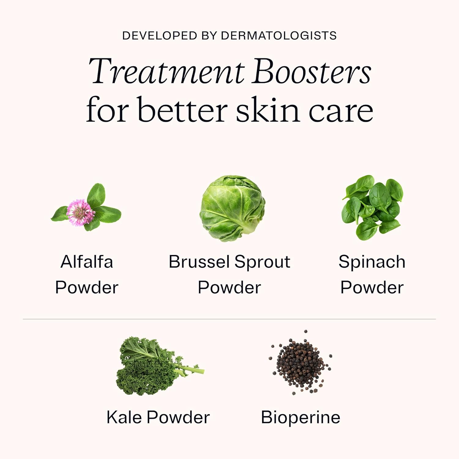 - OTHER KEY INGREDIENTS: Spinach Powder is believed to reduce excess sebum secretion while Kale Powder is known to help improve clogged pores and assist in skin cell regeneration. Alfalfa Powder is rich in antioxidants and Brussel Sprout Powder is believed to support the immune system. Bioperine is a black pepper extract that allows the body to absorb DIM and other nutrients better.