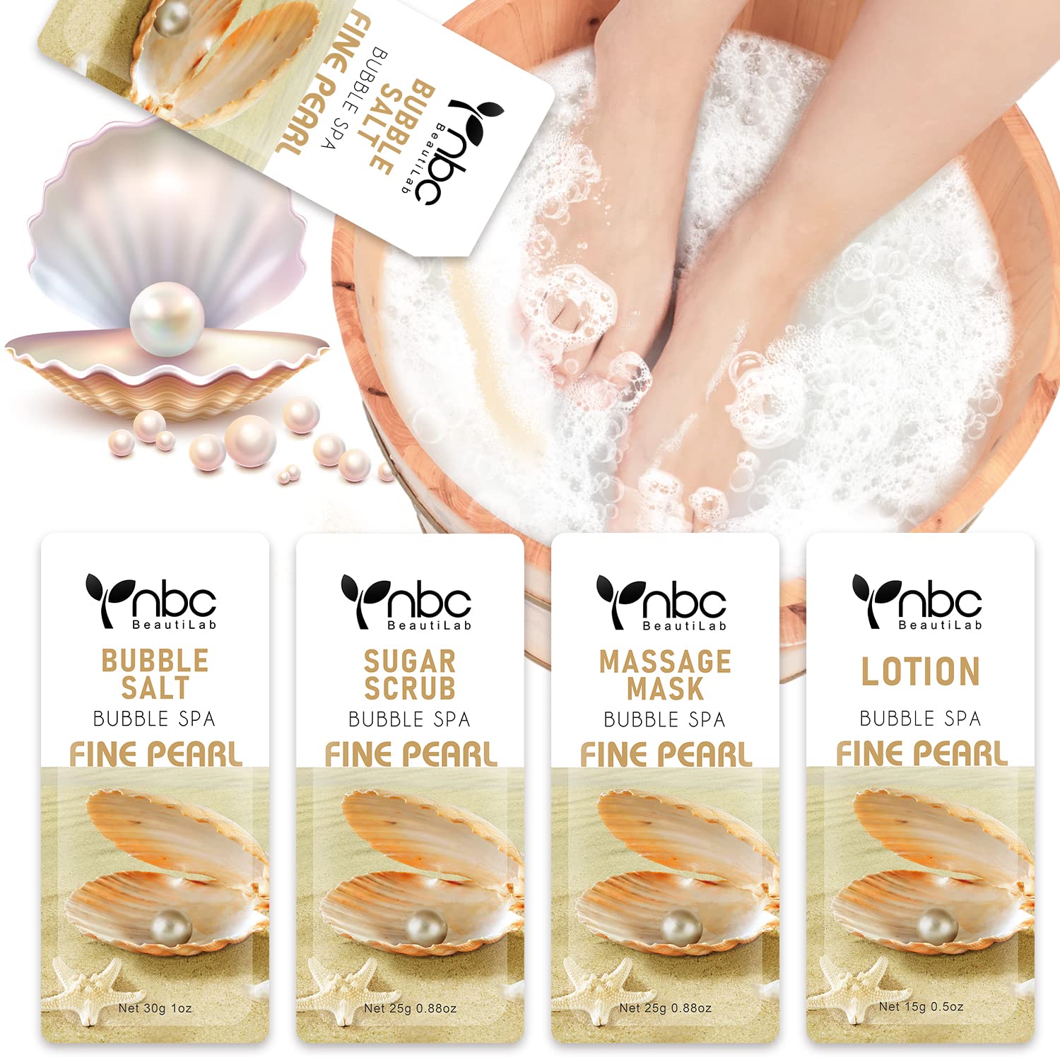 Pedicure Kit Foot Soak Set: Bubble Salt, Sugar Scrub, Massage Mask, Massage Lotion in a Box, 4 Step Foot Spa Kit for Dry Feet,Tired Feet๏ผ1 Set Pearl )