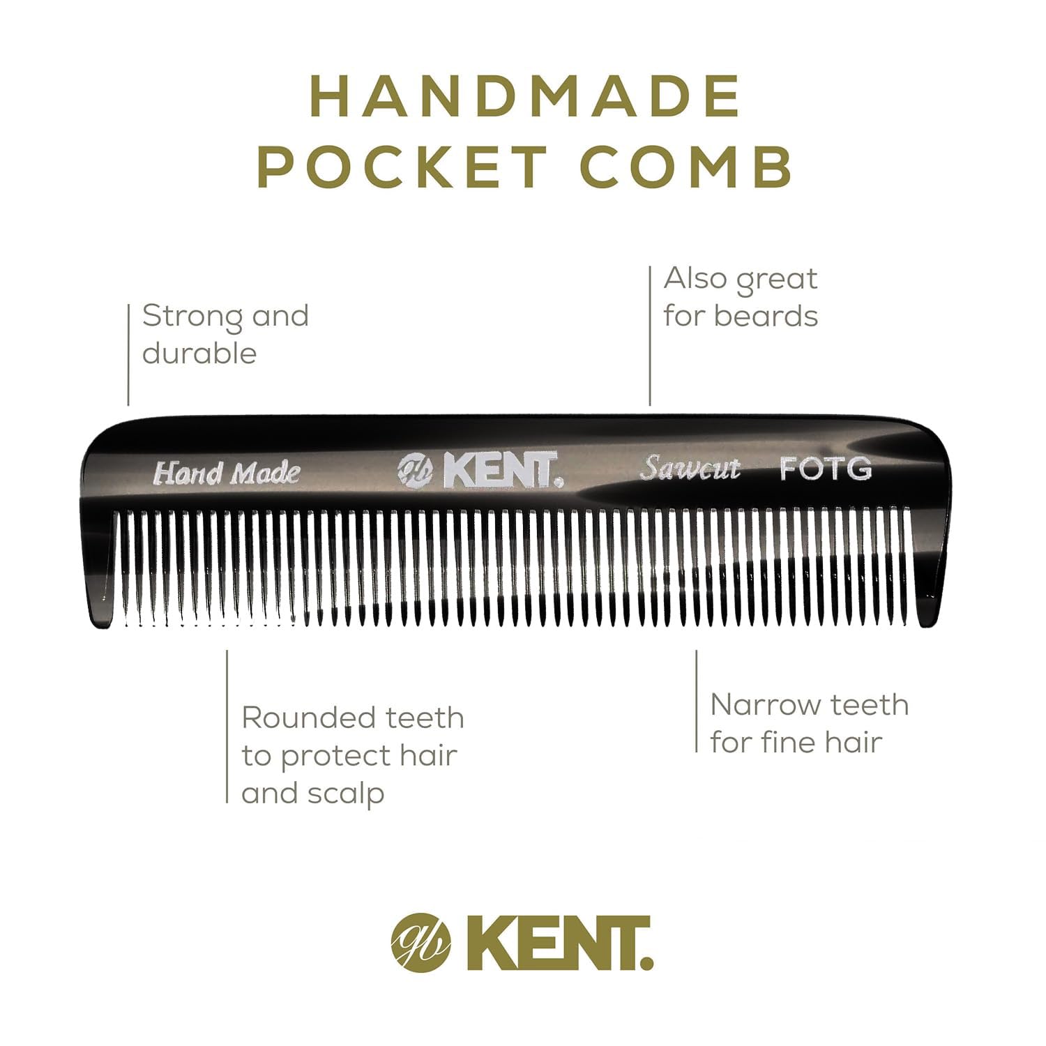 Kent A FOT Handmade Pocket Comb for Men, Women and Kids, All Fine Tooth Hair Comb Straightener for Everyday Grooming and Styling Hair, Beard and Mustache, Saw Cut and Hand Polished, Made in England