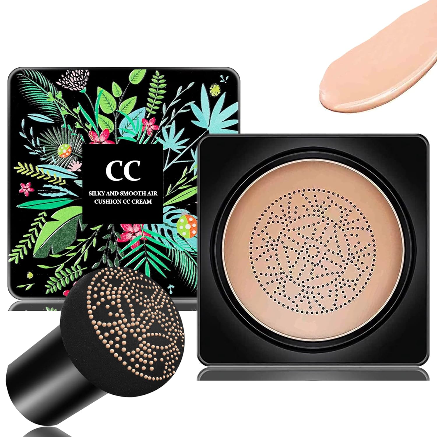 AWCCXMYM Mushroom Head Air Cushion CC Cream Long-Lasting Concealer BB Cream Moisturizing Color Corrector Foundation Makeup Even Skin Tone Liquid Face Makeup (Natural)