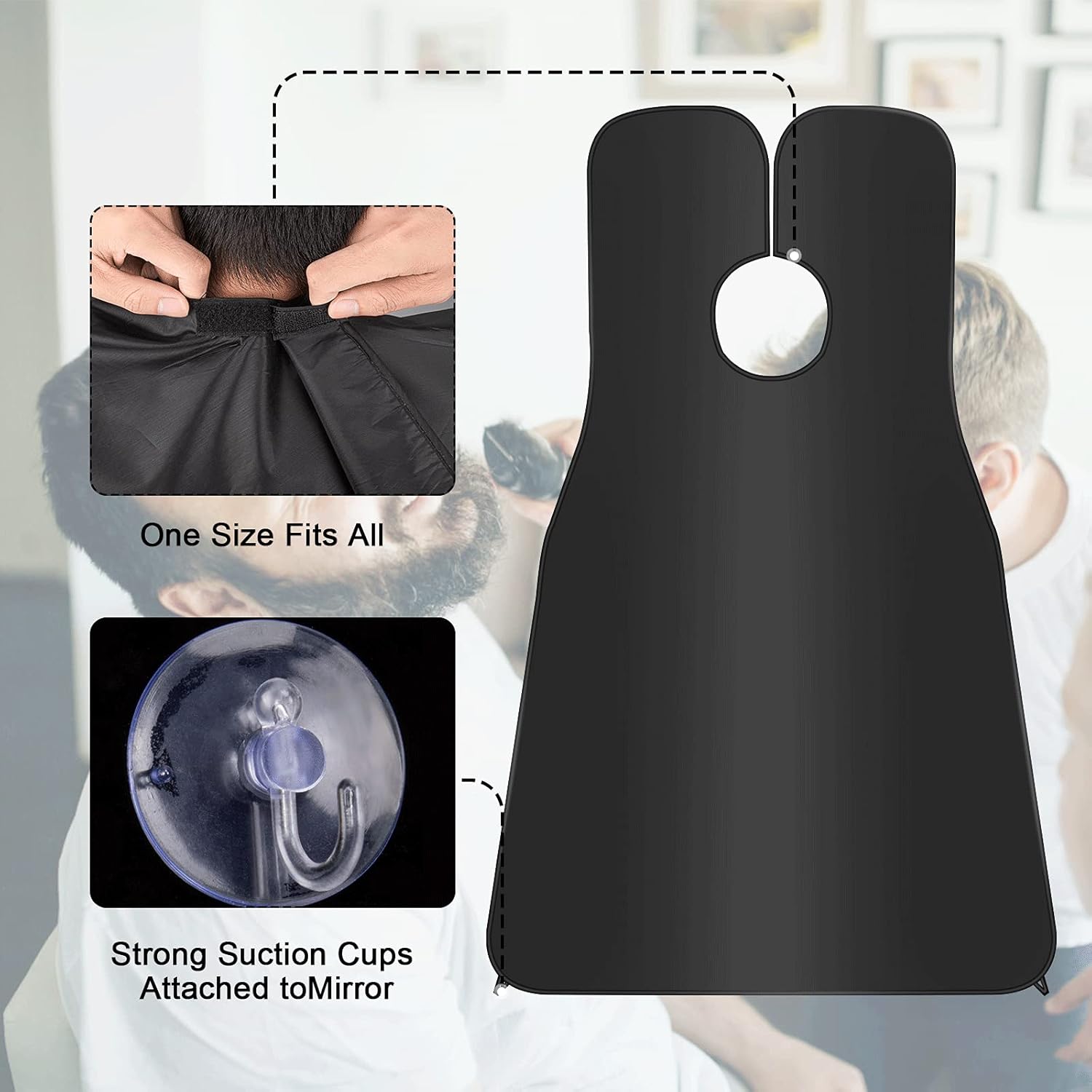 - EASY TO USE: First, wrap the beard catcher around your neck like an apron, then attach the two suction cup bottom corners to the mirror. You'll get an instant net to catch all your whiskers. Once you're done, simply remove it from the mirror and dump the contents into your trash can.