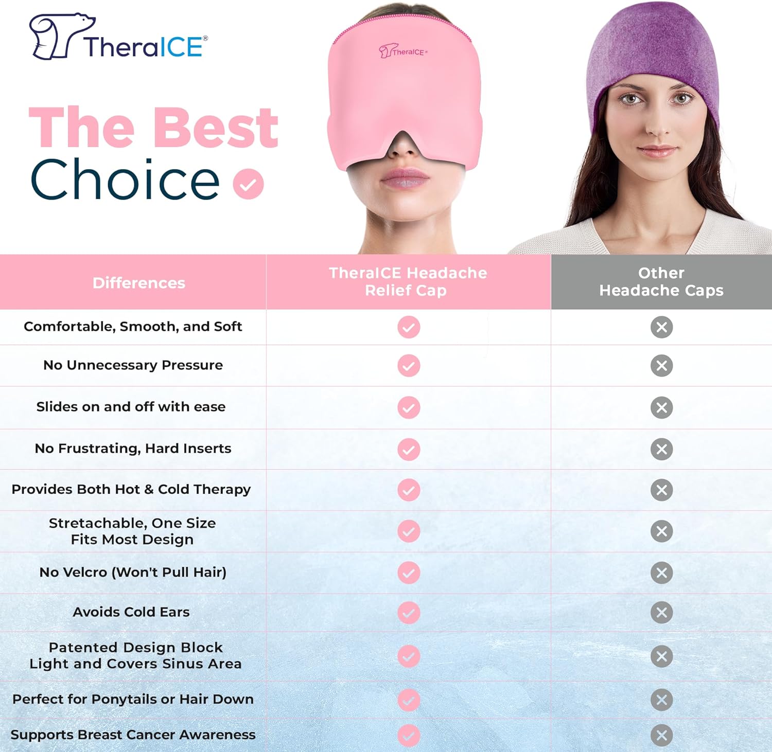 TheraICE Headache Relief Cap, Migraine Ice Pack Mask Products, Women Cooling Gel Hat, Face Cold Compress Head Wrap for Her Stress. Great Birthday Gift for Mom, Sister, Grandma, Girlfriend, & Teacher