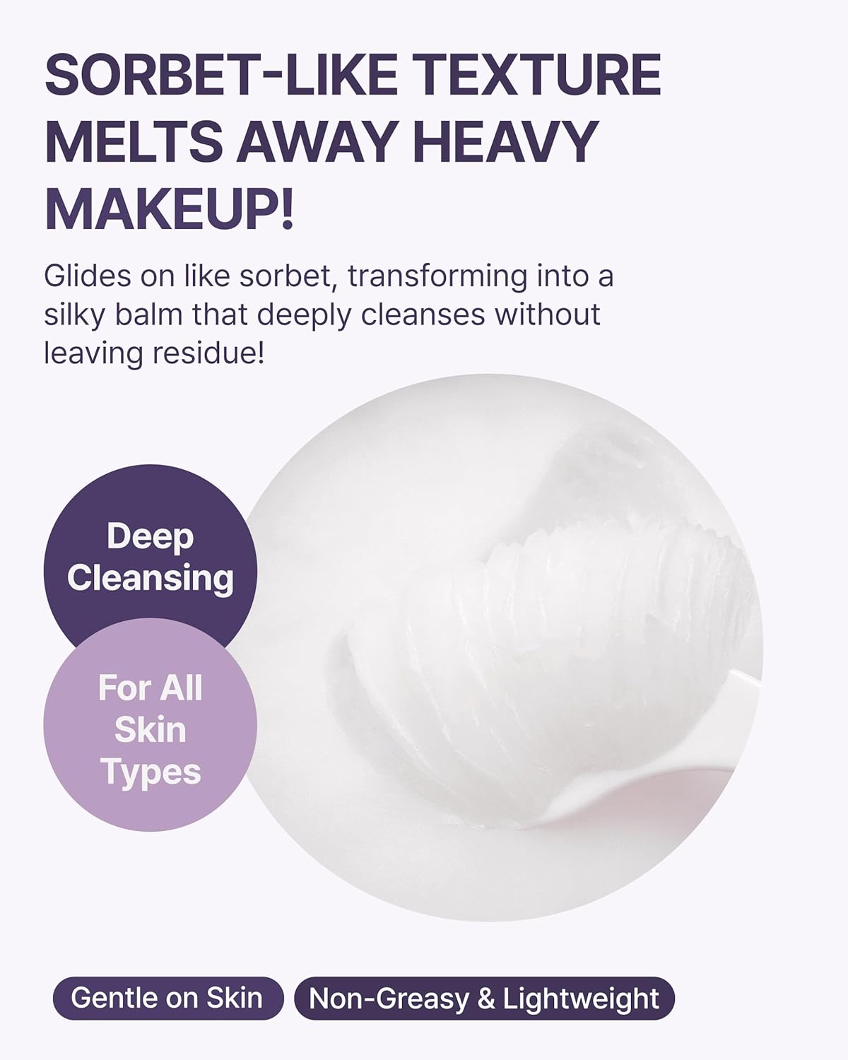 - SORBET-LIKE TEXTURE - Treat yourself to a spa-like experience with our unique sorbet texture. As it glides over your skin, it transforms into a silky oil, effectively dissolving away impurities. Rinse it off to reveal a clean, refreshed complexion that feels hydrated and rejuvenated, never tight or dry.